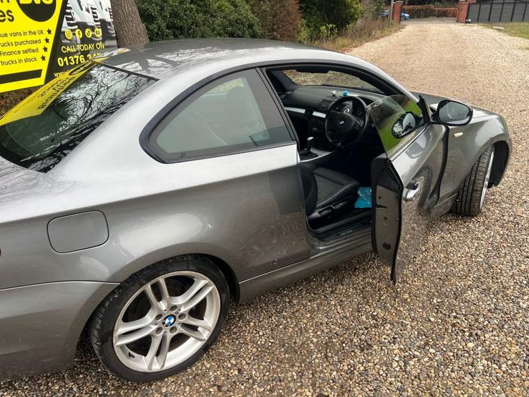 BMW 118 D M-SPORT AUTO WITH FULL BLACK LEATHER INTERIOR, PRIVATE PLATE INCLUDED IN SALE (PIL2157) FULL BLACK LEATHER INTERIOR, AIRCON/CLIMATE, STEPTRONIC AUTO GEARBOX, ELECTRIC WINDOWS, REMOTE CENTRAL LOCKING, STEREO, 105066 MILES WARRANTED, M-SPORT UPGRADE ALLOYS, CRUISE CONTROL, MULTI FUNCTION STEERING WHEEL, 3 DOOR SPORTS COUPE IN METALLIC GUN-METAL GREY, PX CHANGE BARGAIN ON OUR VAN SALES SITE, FULL DEALER FACILITIES, PX CHANGE AND LOW RATE FINANCE AVAILABLE WITH NO DEPOSIT TO PAY, THIS IS THE BEST VALUE M-SPORT 118 DIESEL COUPE AUTO ON THE NET, NATIONWIDE DELIVERY AVAILABLE, WILL COME WITH AA ROADSIDE ASSISTANCE AND A NEW 12 MONTHS MOT, 3-36 MONTHS WARRANTY AVAILABLE,