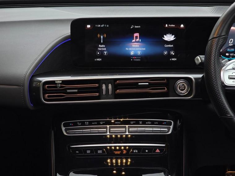 With an exceptionally low mileage for its 2021 registration, this Mercedes-Benz EQC 400 AMG Line (Premium Plus) presents a remarkable opportunity. This all electric, four wheel drive SUV boasts an 88 kWh battery offering a maximum range of 244 miles when new. Charging at home with a 7kW charger will take approximately 12 hours and 13 minutes for a full charge, while rapid public charging can replenish the battery from empty to 80% in just 45 minutes. The vehicle is in excellent condition with its MOT valid until November 2026. Experience the refined driving experience of the EQC, enhanced by its AMG Line trim. Notable features include the KEYLESS GO Comfort Package for effortless entry and start, a comprehensive Parking Package with a 360 degree camera and parking assistance sensors, and a Head Up Display to keep essential information in your line of sight. The MULTIBEAM LED headlights provide superior illumination, and the electric sliding sunroof adds an open airy feel to the cabin. This EQC also offers generous boot space, making it practical for everyday use and longer journeys. Its impressive acceleration, reaching 0-60mph in a swift 5.1 seconds, demonstrates its dynamic performance, setting it apart from many other electric vehicles in its class.