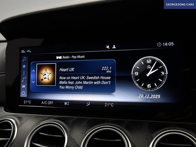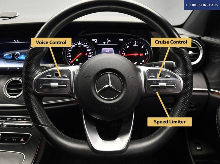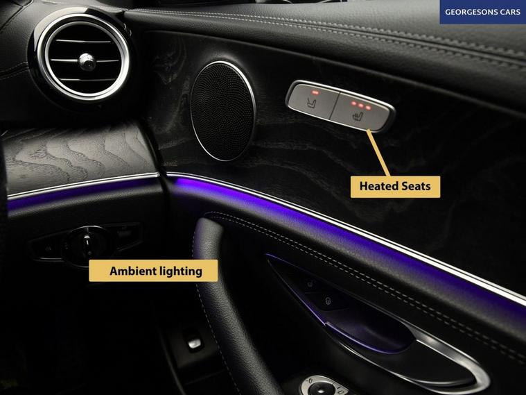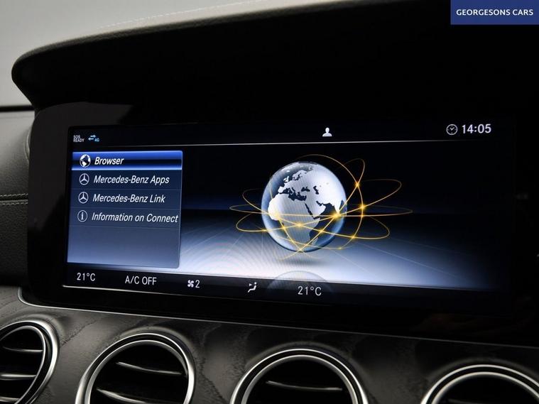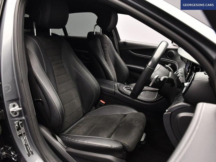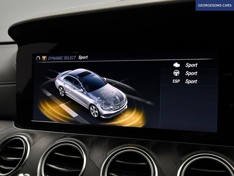 The Mercedes-Benz E220d AMG Line combines a refined 2.0-litre turbo diesel engine with 194hp, delivering 0-62mph in 7.4 seconds and up to 61.4mpg in this rear-wheel-drive setup with a silky 9-speed G-Tronic+ automatic transmission. The AMG Line trim brings sporty elegance with 19-inch alloys, lowered suspension and premium interior. With five services, this E-Class is in excellent condition. Stay connected with Bluetooth and DAB radio. Parking is a breeze thanks to the reverse camera and parking sensors. Stay comfortable with dual-zone climate control and heated front seats. Cruise control with speed limiter, selectable drive modes and blind spot assist enhance safety and relaxation on every journey. The spacious four-door saloon includes a 540-litre boot for practicality.