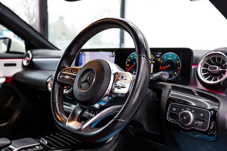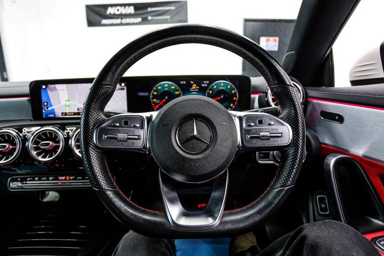 This 2020 Mercedes Benz CLA180 AMG Line (Premium 2) offers a sophisticated driving experience. Powered by a 1.3 litre petrol engine and meeting Euro 6 emissions standards, this model combines style with efficiency. The AMG Line trim enhances its sporty appeal, while the THERMOTRONIC luxury automatic climate control with a two zone system and display ensures a comfortable cabin environment for all occupants. With a fuel economy of 46 miles per gallon, this CLA180 demonstrates impressive efficiency, a highlight that sets it apart from many similar vehicles. Furthermore, its low CO2 emissions contribute to a more environmentally conscious drive. This Mercedes Benz CLA represents a well equipped and economical choice for those seeking premium quality. Optional equipment includes: Light longitudinal-grain aluminium, Polar White gloss , Two-tone Classic Red/Black leather.