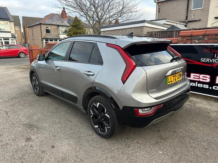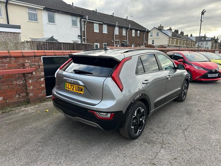 October 2022 KIA NIRO 3 EV 64.8 KWH SUV Automatic. finished in Premium Interstellar grey with two tone grey/black half leather trim, The car comes with factory fitted rear privacy glass and 17 alloy wheels. This example is in the highly desirable 3 trim This is the all new generation model featuring the 64.8kwh battery offering a fantastic official WLTP range of 285 miles it is a perfect modern family SUV that balances cutting edge tech with incredible efficiency. The car has covered 46k miles with the same owner from new, the car has 2 services recorded As it is a Kia the car benefits from the remainder of its 100, 000 mile 7 year warranty .Key specifications include a 64.8kwh lithium ion battery with a range of 285 miles power output of 201bhp 0-60mph in 7.8 seconds The Kia supports DC rapid charging 10-80% in approx. 45 minutes Premium 3 pack features are 10.25 inch touchscreen navigation with Kia Connect (uvo) Vehicle to load (V2L) Use the cars battery to power 3 pin household appliances (ideal for camping or laptops) , Heated front seats & Heated steering wheel , half leather upholstery faux leather and cloth, wireless smartphone charging, smart cruise control, with stop & go function, front & rear parking sensors & high definition reversing camera, Apple car play & Android auto, lane follow assist, forward collision-avoidance and highway driving assist. The Niro EV is consistently rated as one of the best real-world electric cars unlike many competitors the range is reliable even in the winter The 3 trim is the sweet spot of the range giving you the big screens and luxury feel without the price tag of the 4 model.