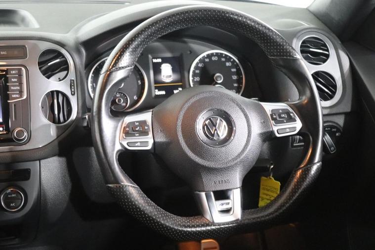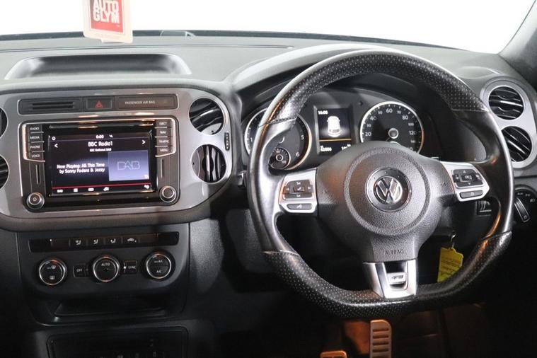 This well maintained 4WD Volkswagen Tiguan Tech R-Line finished in Deep Black looks fantastic complemented by 18 inch Alloy Wheels, Rear Privacy Glass, LED Running Lights, R-Line Body Kit and Bi-Xenon Headlights. Find your way with integrated SATELLITE NAVIGATION with TOUCHSCREEN Display. Park in ease with FRONT & REAR PARKING SENSORS. Keep connected with BLUETOOTH Phone System. Listen to your music through DAB Digital Radio. Comfortable to drive with Dual-Zone CLIMATE CONTROLLED AIR CONDITIONING. Well equipped with Auto Headlights and Rain-Activated Wipers. Also fitted with Driver Alert, ISOFIX seats, Multifunctional Steering Wheel, Alarm, Immobiliser and Remote Door Locking with 2 x keys. Buy in confidence with SERVICE HISTORY with 9 x Documented Services.