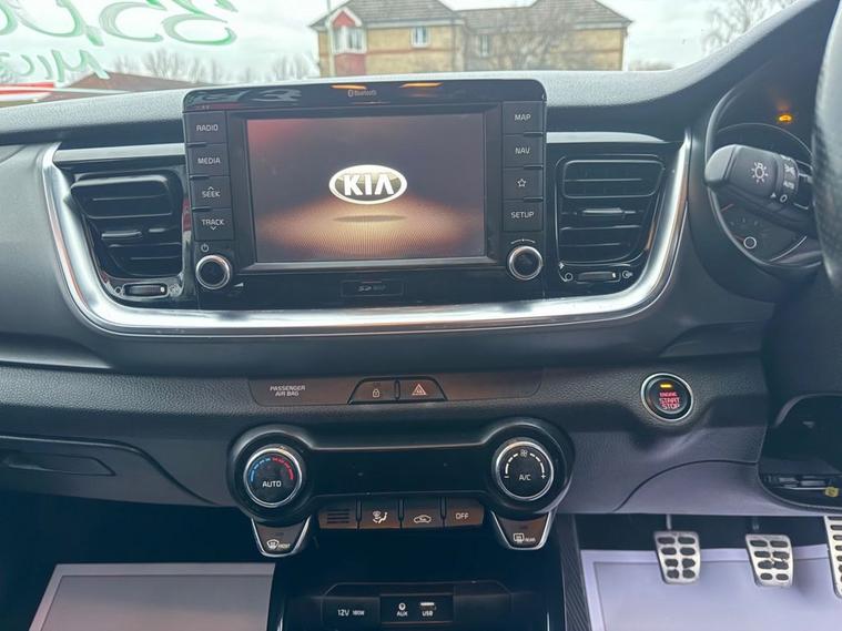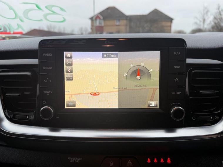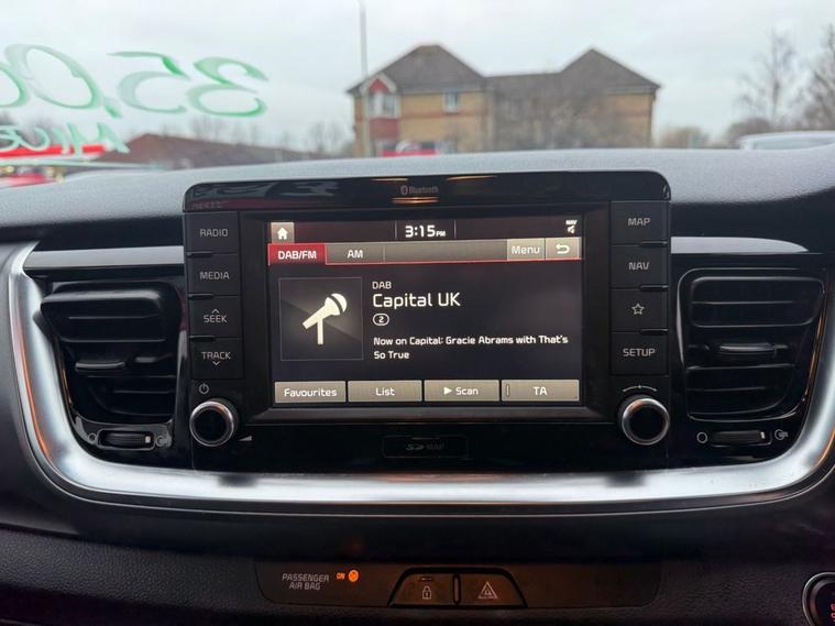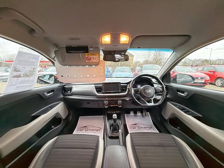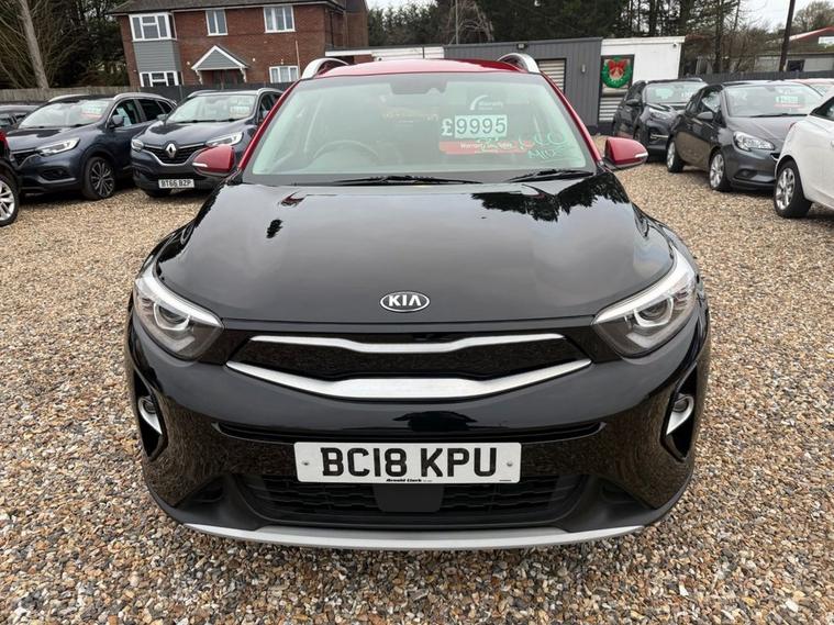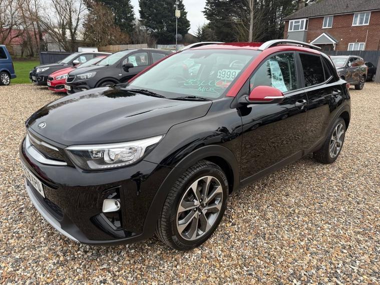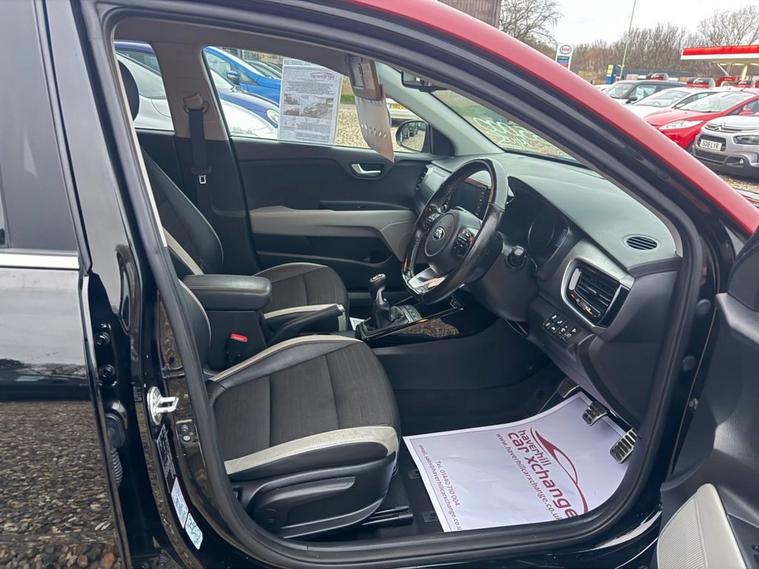 ONLY 35, 680 MILES+12 MONTHS MOT+MAIN DEALER SERVICE HISTORY+7 INCH TOUCHSCREEN SATELLITE NAVIGATION SYSTEM KIA CONNECTED SERVICES FEATURING TOMTOM+APPLE CARPLAY/ANDROID AUTO+BLUETOOTH WITH VOICE RECOGNTION+LANE DEPARTURE WARNING SYSTEM+AUTOMATIC AIR-CONDITIONING+HEATED HALF LEATHER UPHOLSTERY+AUTOAMTIC HEADLIGHT ACTIVATION+RAIN-SENSING WINDSCREEN WIPERS+REAR PARKING ASSISTANCE WITH PARKING CAMERA+HEATED MULTIFUNCTION STEERING WHEEL+METALLIC MIDNIGHT BLACK PAINT WITH RED ROOF AND DOOR MIRRORS+17 INCH ALLOY WHEELS. At Haverhill Car Xchange we would like to offer you our EXTREMLEY LOW MILEAGE Kia Stonic First Edition SUV which has been finished in a metallic Midnight Black paint with Red Roof/Red Door Mirrors and Luxurious Black-Grey half leather and cloth upholstery. Excellent Specification Includes a 7 Inch Touchscreen Satellite Navigation System-Featuring TomTom Kia Connected Services, Lane Departure Warning System with Driver Attention Warning, DAB Radio-Apple CarPlay/Android Auto Via Connectivity-MP3 Compatibility, Bluetooth with Voice Recognition and Music Streaming, USB Charging Port in Front and Rear, AUX Connection, Front 12 Volt Power Socket, Automatic Air-Conditioning, Gear Shift Indicator, All-Round Electric Windows with Drivers Auto Up-Down Function, Body Coloured Bumpers/Door Handles/Red Roof/Red Door Mirrors with Integrated Side Indicators and Rear Spoiler with Integrated Break Light, Front and Rear Silver Skid Plates, Automatic Headlight Activation, BI-Function Projection Headlights with Static Bending, LED Daytime Running Lights, Projection Front Fog Lights, LED Rear Combination Lights, Auto Dimming Rear-View Mirror, Rain-Sensing Windscreen Wipers, Heated Seats, Rear Parking Assistance with Parking Camera, Heated Multifunction Steering Wheel, Tinted Windows, 17 Inch Alloy Wheels, Power Steering, ABS Breaking System, Airbags, Alarm, Immobiliser, Remote Central Locking and ISOFIX Anchorage Points for Child Seats.