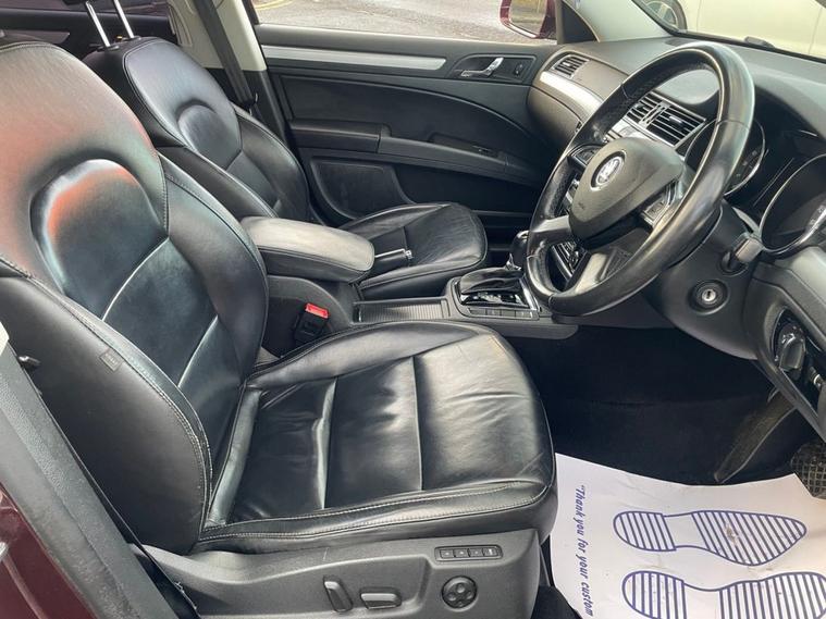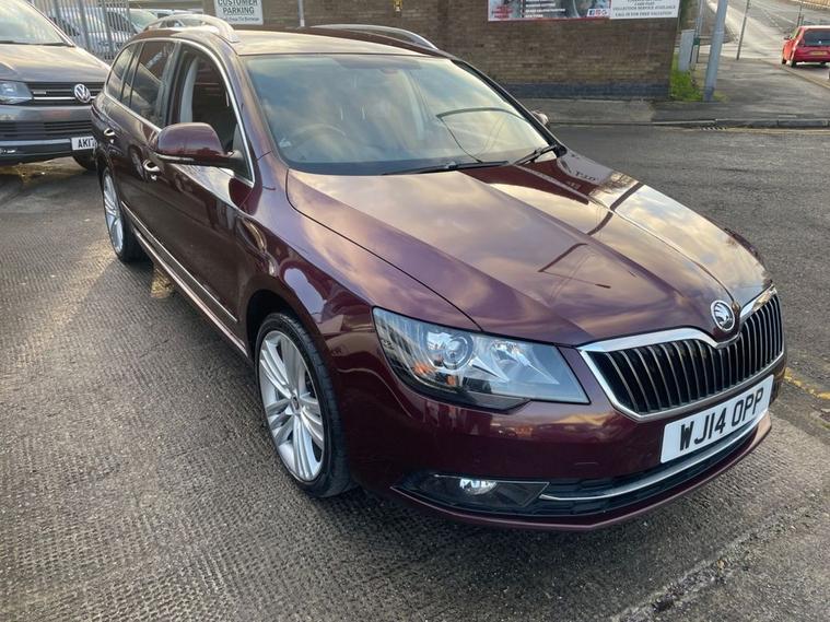 14 SKODA SUPERB 2.0 TDI CR 170 ELEGANCE 5DR AUTOMATIC/DSG 170 ESTATE IN METALLIC RED WITH FULL CHARCOAL LEATHER TRIM, 102, 000 MILES WITH FULL SERVICE HISTORY, 2 FORMER KEEPERS, FULL VOSA MOT HISTORY, HPI CHECKED AND CLEARED WITH FULL REPORT AVAILABLE, TAKEN IN PART EXCHANGE FROM LOCAL OWNER, RUNS AND DRIVES VERY WELL, BIG SPEC THAT INCLUDES FULL LEATHER TRIM, HEATED SEATS, ELECTRIC SEATS, SAT NAV, PARKING SENSORS, FULL ELECTRICS PACK, ALLOY WHEELS, PRIVACY GLASS ETC, NICE CAR THROUGHOUT, WILL BE SUPPLIED WITH A NEW MOT, INDEPENDENT MULTI POINT INSPECTION AND A COMPREHENSIVE NATIONWIDE PARTS AND LABOUR WARRANTY £6495.00