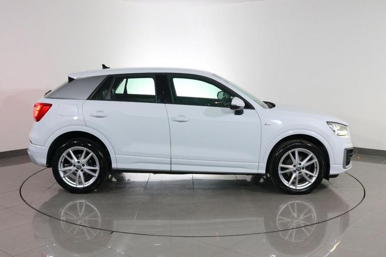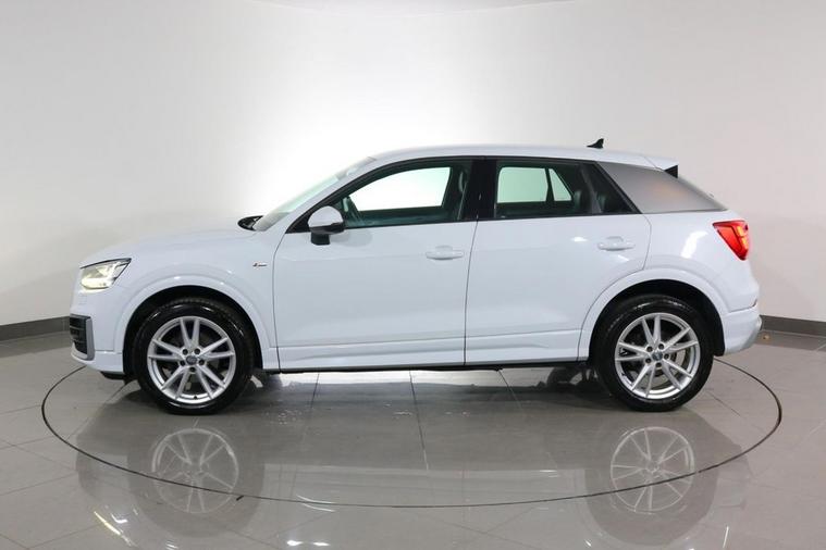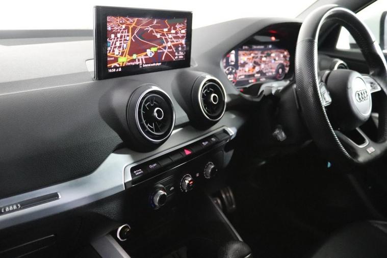 This well maintained Audi Q2 S Line finished in Ibis White looks fantastic complemented by 18 inch Alloy Wheels, S Line Body Styling and LED Headlights. Find your way with integrated SATELLITE NAVIGATION with Pop Up LCD Display. Keep connected with Audi Smart Phone Interface with APPLE CARPLAY and ANDROID AUTO. Park in ease with REAR PARKING SENSORS. Keep connected with BLUETOOTH phone system. Listen to your music through DAB Digital Radio and Audi Music Interface. Comfortable to drive with AIR CONDITIONING and CRUISE CONTROL. Sit in luxury with 1/2 LEATHER Upholstery and Sports S Line Seats. Well equipped with POWER TAILGATE, Power-Folding Mirrors, Auto Headlights and Rain-Activated Wipers. Also fitted with Multifunctional Paddle Shifting Flat Bottomed Steering Wheel, ISOFIX Seats, Audi Drive Select, Alarm, Immobiliser and Remote Door Locking with 2 x keys. Buy in confidence with FULL SERVICE HISTORY with 5 x Documented Services.