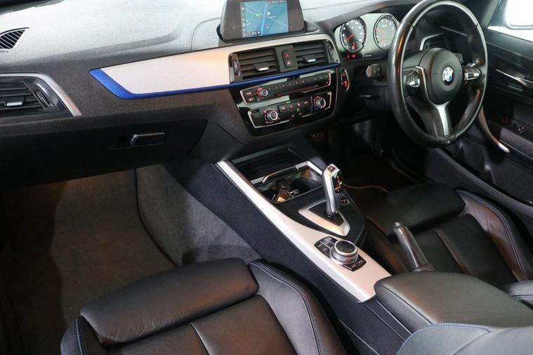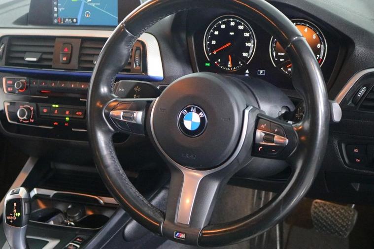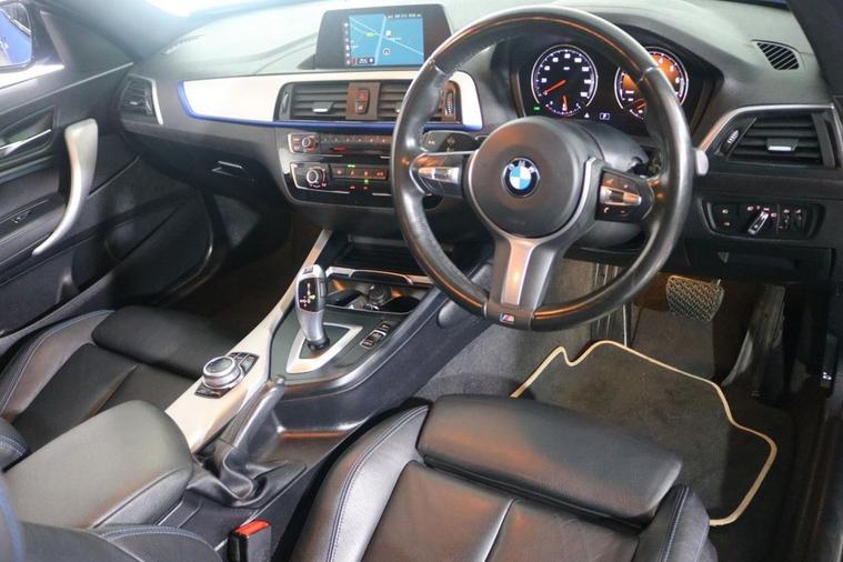 This well maintained AUTOMATIC BMW 118i GPF M Sport finished in Estoril Blue looks fantastic complemented by 18 inch Alloy Wheels, M Sport Body Styling, Rear Privacy Glass, LED Running Lights and M PERFORMANCE Body Kit. Find your way with integrated SATELLITE NAVIGATION. Sit in luxury with FULL LEATHER Upholstery. Keep connected with BLUETOOTH Phone System with USB port. Listen to your music through DAB Digital Radio. Comfortable to drive with Auto CLIMATE CONTROLLED AIR CONDITIONING and Speed Limiting Function. Well equipped with Auto Headlights and Rain-Activated Wipers. Also fitted with Switchable Ambient Lighting, Drive Performance Control, Multifunctional Steering Wheel, ISOFIX seats, Alarm and Remote Door Locking with 2 x keys. Buy in confidence with FULL SERVICE HISTORY with 6 x Documented Services.