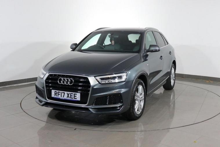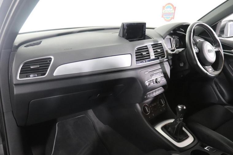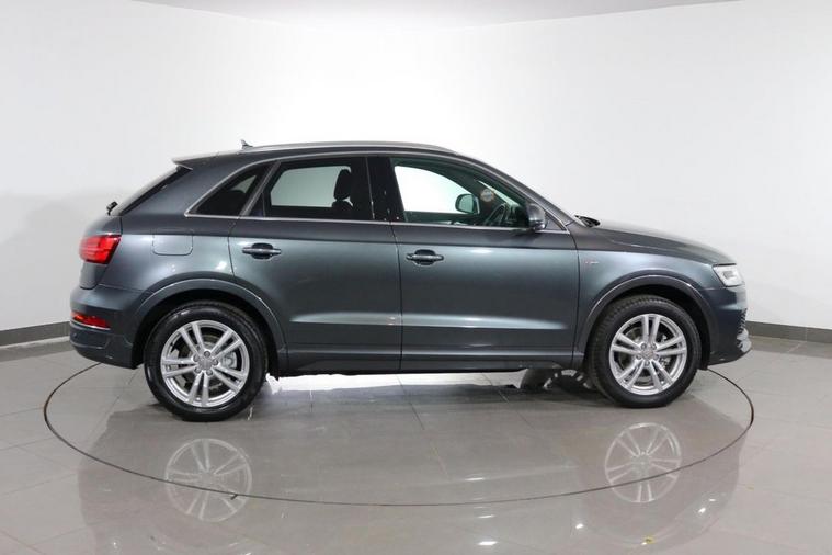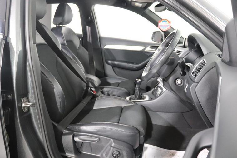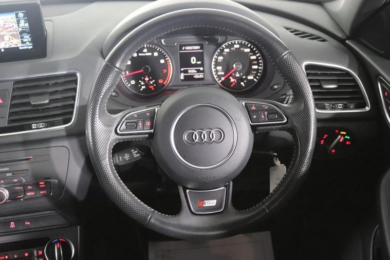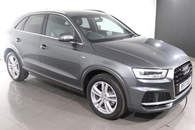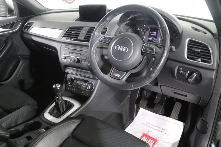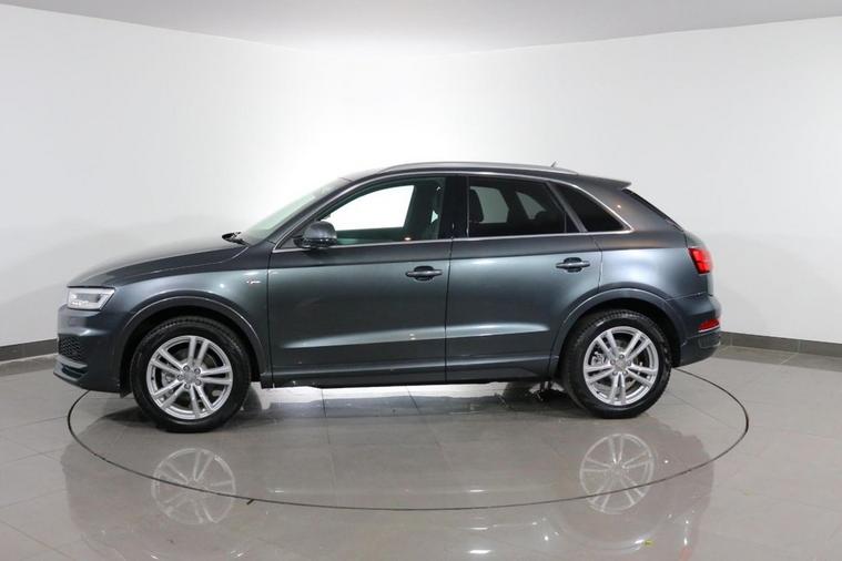 This well maintained Audi Q3 S Line finished in Monsoon Grey looks fantastic complemented by 18 inch Alloy Wheels, LED Headlights and S Line Body Kit. Find your way with integrated SATELLITE NAVIGATION with 6.5 inch Display. Park in ease with FRONT & REAR PARKING SENSORS. Keep connected with BLUETOOTH phone system. Listen to your music through DAB Digital Radio and Audi Music Interface. Comfortable to drive with Dual-Zone CLIMATE CONTROLLED AIR CONDITIONING and CRUISE CONTROL. Well equipped with Power-Operated Tailgate, Auto Headlights, Rain-Activated Wipers and Power-Operated Wing Mirrors. Also fitted with Audi Drive Select, Multifunctional Steering Wheel, ISOFIX seats, Alarm, Immobiliser and Remote Door Locking with 2 x keys. Buy in confidence with JUST 2 OWNERS from new and FULL SERVICE HISTORY with 8 x Documented Services.
