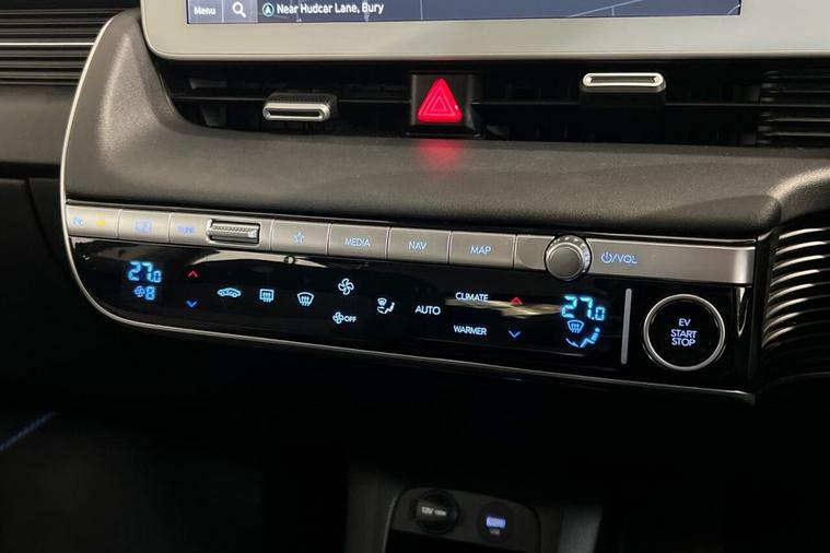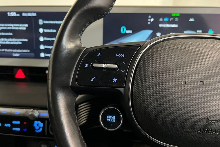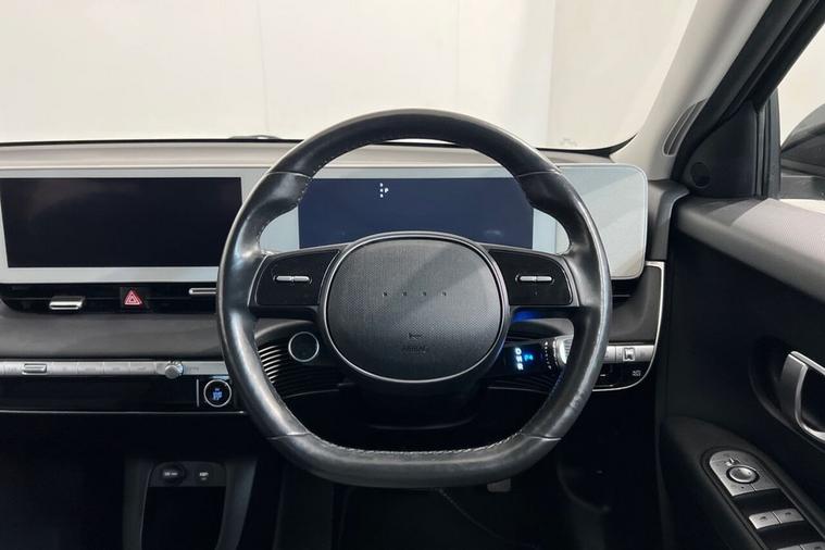 This 2021 Hyundai IONIQ 5 Premium is a superb example, having been owned by just one person since new. This electric vehicle boasts a substantial 73 kWh battery, offering a maximum range of 298 miles when new, ensuring you can travel further on a single charge. Charging at home with a 7kW charger takes approximately 10 hours and 53 minutes for a full charge, while rapid public charging can take you from empty to 80% in an impressive 17 minutes. The vehicles MOT is valid until September 2026, providing peace of mind. Notable features include dual LED headlamps for excellent visibility, seamless phone connectivity with both Android Auto and Apple CarPlay, a convenient wireless phone charging pad, and a heated steering wheel for added comfort during colder journeys. The IONIQ 5 Premium stands out with its remarkable performance, achieving 0-60mph in just 7.4 seconds, demonstrating its responsive acceleration. This electric car also offers a generous boot space, making it practical for everyday use and longer trips. The 298 mile maximum range highlights its capability as a long distance electric car, setting it apart from many others in its class.