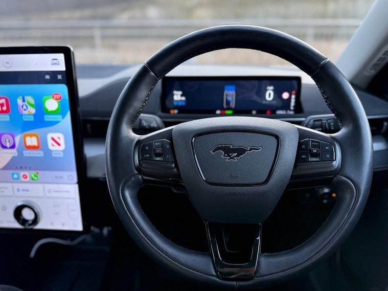 This 2022 Ford Mustang Mach E Extended Range is a superb example, having had only one owner from new and boasting a clear vehicle history check. As an electric vehicle, it offers an impressive battery total capacity of 99 kWh, providing a maximum range of 379 miles when new. This model comes equipped with the Next Generation SYNC system featuring Connected Navigation and Natural Voice Search, along with Bluetooth connectivity. For comfort, it includes heated driver and passenger seats. Parking is made easier with front and rear parking sensors, a rear view camera, and BLIS Blind Spot Information System with Cross Traffic Alert. The 379 mile maximum range at new highlights how this Mustang Mach E stands out from other electric vehicles, offering substantial journeys between charges. When you need to recharge, a full charge at home using a 7kW charger takes approximately 14 hours and 36 minutes, while the fastest public charging can take you from empty to 80% in just 51 minutes. This combination of long range, convenient charging options, and advanced features makes this electric Ford Mustang Mach E a compelling choice.