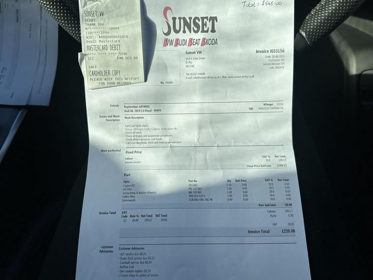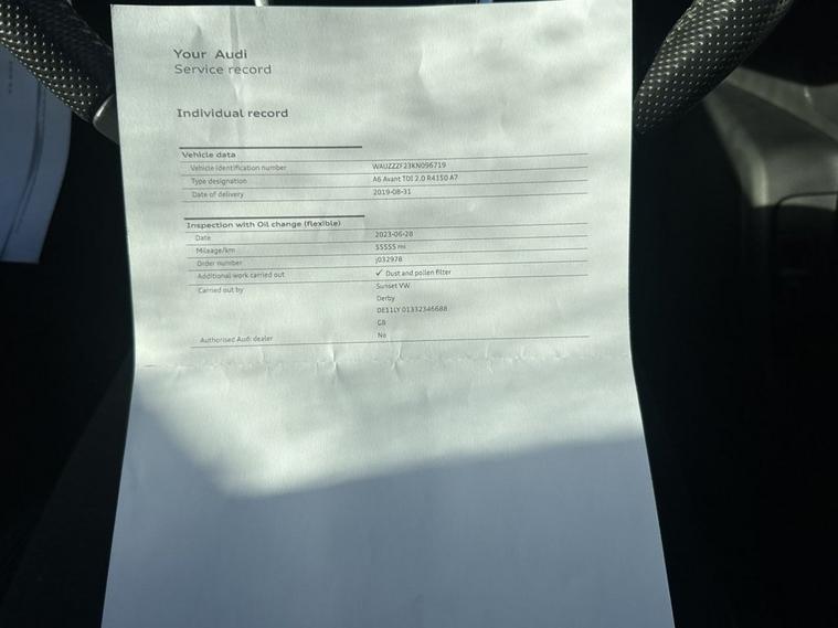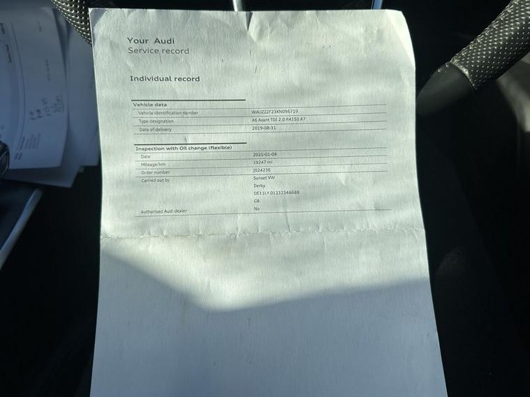 This 2019 Audi A6 Avant TDI S line boasts a clear vehicle history, offering you peace of mind. This stylish estate car is equipped with a 2.0 litre Euro 6 diesel engine, ensuring efficient performance. Inside, youll find comfortable heated front seats, a Bluetooth interface for seamless connectivity, and deluxe 2 zone electronic climate control to keep everyone comfortable. The light and rain sensor automatically adjusts headlights, while the rear view camera aids with parking. Experience the responsive acceleration of this A6 Avant, reaching 0 to 60mph in just 8.3 seconds. This impressive performance, combined with its sophisticated S line trim, sets it apart from other vehicles in its class. The combination of practical estate car versatility and Audis renowned build quality makes this A6 Avant a compelling choice for those seeking a premium driving experience.