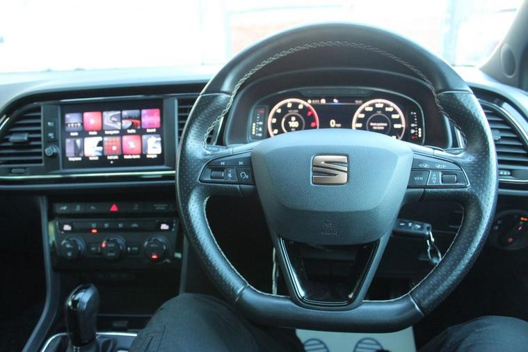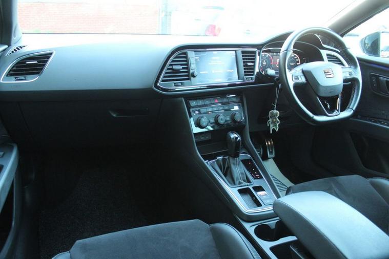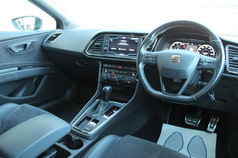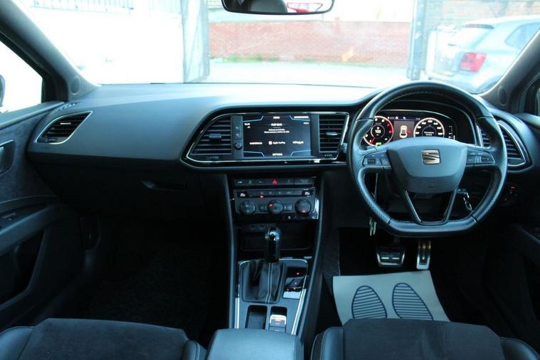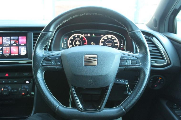 - Flat Bottomed-Perforated Leather Steering Wheel with White Stitching and CUPRA Logo