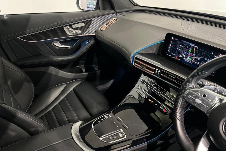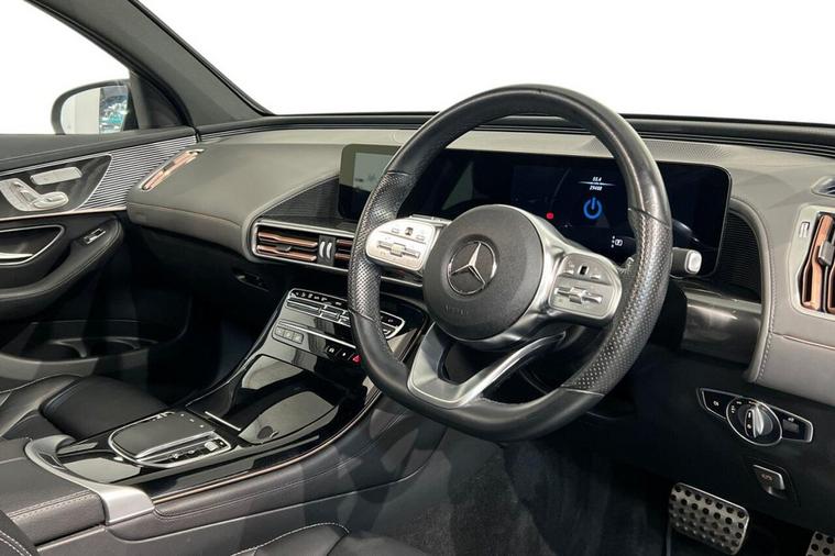 With only one owner and a remarkably low mileage of 29, 484 miles for a 2021 model, this Mercedes Benz EQC 400 AMG Line (Premium Plus) presents an exceptional opportunity. This four wheel drive electric vehicle boasts an 88 kWh battery offering a maximum range of 244 miles when new. Charging is convenient, with a full charge at home taking approximately 12 hours and 13 minutes using a 7kW charger, while rapid public charging can achieve 80% capacity in just 45 minutes. The vehicles MOT is valid until November 2026, and it has a clear vehicle history check, providing peace of mind. Experience a refined drive with impressive performance, accelerating from 0 to 60mph in a swift 5.1 seconds, showcasing its dynamic capability. The AMG Line trim enhances its sporty appeal, complemented by a host of premium features. These include a comprehensive Parking Package with a 360 camera and Parktronic, an electric sliding sunroof, Blind Spot Assist for added safety, and a Head Up Display for convenient information access. Furthermore, enjoy the ease of wireless smartphone charging and ample boot space for all your needs. These advanced features and impressive specifications highlight how this EQC stands out from other vehicles in its class.