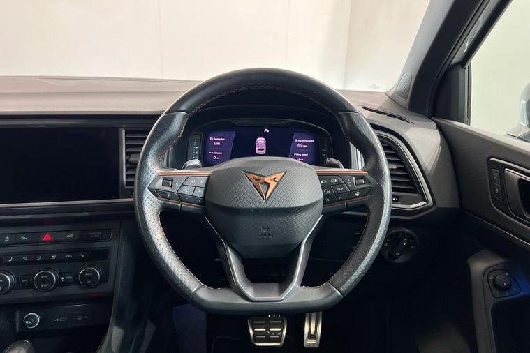 This 2023 CUPRA Ateca TSI VZ2 presents a superb ownership proposition, having had only one owner from new and boasting a clear vehicle history check. This four wheel drive SUV is powered by a potent 2.0 litre petrol engine, meeting Euro 6 emissions standards. Inside, youll find a wealth of comfort and convenience features, including a heated steering wheel and heated front seats, perfect for those colder mornings. The electric drivers seat includes a memory function, ensuring your preferred seating position is always ready. For effortless manoeuvring, the self parking functionality, complete with front and rear parking sensors and a front camera, takes the stress out of tight spots. The CUPRA Ateca TSI VZ2 truly excels with its performance and practicality. Its impressive acceleration, reaching 0-60mph in just 4.9 seconds, sets it apart from many other vehicles in its class, offering an exhilarating driving experience. Furthermore, the generous boot space provides ample room for all your luggage, shopping, or equipment, making it a versatile choice for families and adventurers alike. The Safe and Driving Pack, which includes adaptive cruise control, further enhances your journey, providing both safety and ease on longer trips.