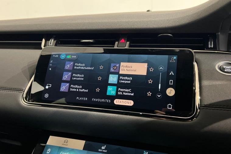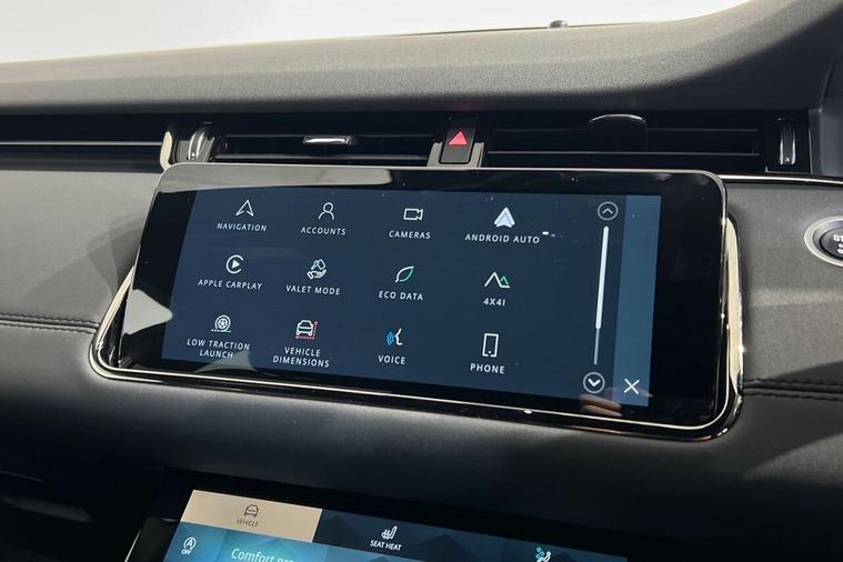 This 2021 Range Rover Evoque P300e R-Dynamic SE boasts exceptionally low mileage for its age, having covered just 21, 429 miles, and has had only one owner from new. This Euro 6 compliant, four wheel drive model features a 1.5 litre petrol plug in hybrid engine, offering an impressive 0-60mph acceleration in just 6.1 seconds. Its provenance is further assured with a clear vehicle history check and an MOT valid until November 2026. Notable features include a striking Black Contrast Roof, a sophisticated 10 inch deployable touchscreen with a lower touchscreen, and convenient Keyless Entry. The R-Dynamic SE trim enhances the driving experience with Premium LED Headlights featuring Signature Daytime Running Lights. Inside, you will find luxurious 12 way heated electric front seats with driver memory and 10 way passenger seats, complemented by 2 way manual headrests and a rear centre armrest. These elements, combined with the vehicles advanced hybrid technology and dynamic performance, demonstrate how this Range Rover Evoque offers a superior blend of efficiency, power, and premium comfort compared to other vehicles in its class.