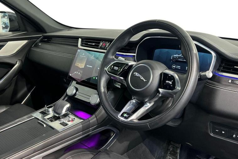 This 2022 Jaguar F-PACE P400e R-Dynamic Black boasts a clear vehicle history and has had only one owner from new. This impressive plug in hybrid SUV features a 2.0 litre petrol engine paired with four wheel drive, meeting Euro 6 emissions standards. Notable features include an Interactive Driver Display, AC charging capability, and both home and public charging cables, all complemented by a distinctive P400e AWD badge. Experience exhilarating performance with a rapid 0-60mph acceleration time of just 5.0 seconds, showcasing how this F-PACE offers a more dynamic drive than many comparable vehicles. The R-Dynamic Black trim enhances its sporty appeal, while the generous boot space ensures practicality for all your needs, making this Jaguar a compelling choice for those seeking both performance and versatility.