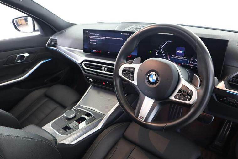 This 2024 BMW 3 Series 320i M Sport is a superb example of German engineering. This Euro 6 compliant model boasts a responsive 2.0L petrol engine, delivering an impressive 0-62mph in just 7.6 seconds. Inside, you'll find the M Sport trim enhancing the sporty feel, complemented by luxurious Vernasca Leather in Black with Grey Stitching. Enjoy the open air with the Panoramic Glass Sunroof, and stay comfortable with automatic climate control. The BMW Live Cockpit Plus, featuring Bluetooth connectivity, keeps you connected on the go. Navigating tight spaces is made effortless thanks to the Parking Assistant, which includes front and rear sensors along with a rear camera. These features, combined with the dynamic performance and sophisticated M Sport styling, clearly set this 3 Series apart from other vehicles in its class, offering a refined and engaging driving experience.