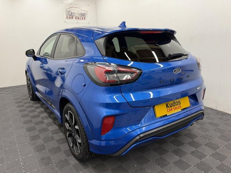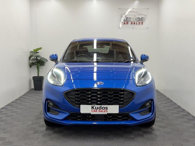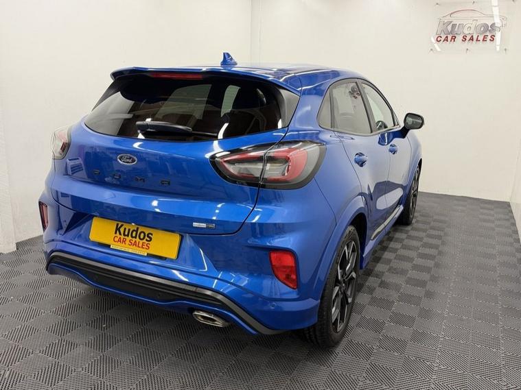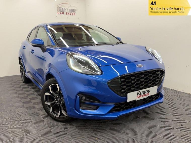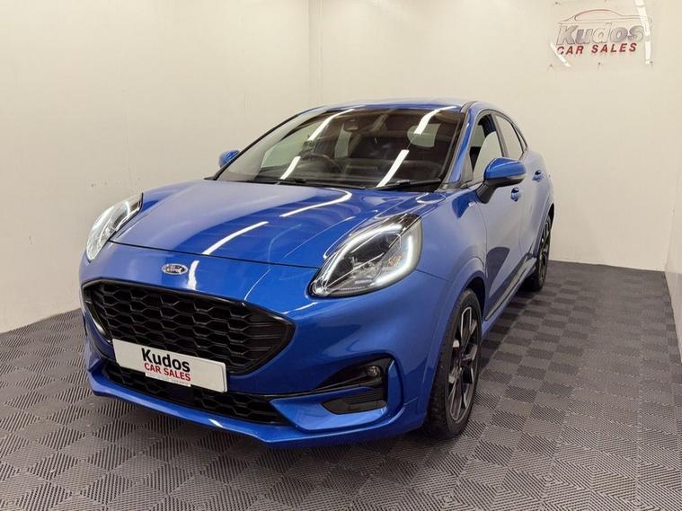 2021 FORD PUMA 1.0 EcoBoost Hybrid mHEV 155 ST-Line X 5dr - EXCEPTIONAL EXAMPLE AND FINISHED IN THE MOST STUNNING COLOUR, DESERT ISLAND BLUE. FINANCE AVAILABLE FROM ONLY £243 per mth. EACH VEHICLE COMES WITH A FREE HPI CLEAR REPORT AND 1 YEAR AA BREAKDOWN COVER. HEAD TURNING CAR AND IN FANTASTIC CONDITION. ***ULEZ***ONLY 56200 MILES. MOT UNTIL 04/01/2027 WITH NO ADVISORIES.**HUGE SPEC** HALF LEATHER AND SUEDE INTERIOR, FLAT BOTTOM STEERING WHEEL, DRIVING MODE SELECT [ SPORT- NORM - ECO ] TOUCH SCREEN SATNAV, CRUISE CONTROL, INDIVIDUAL CLIMATE CONTROL, AIRCON, REAR CAMERA AND PARKING SENSORS, ST-Line STYLE PACK, KEYLESS PUSH BUTTON START, B&O SPEAKER UPGRADE PACK, BLUETOOTH, DAB RADIO, LED DAYTIME LIGHTS, AUTO LIGHTS AND WIPERS, HEATED WINDSCREEN, POWER FOLDING MIRRORS, ELEC WINDOWS AND MIRRORS, UNMARKED 18 ALLOY WHEELS. FINANCE PACKAGES - With a number of lenders on board i am able to offer Finance to suit individual circumstances, including Sub Prime. All CARS ARE HPI CHECKED AND CLEAR. WARRANTY - At KUDOS CAR SALES every vehicle comes with a FREE warranty through Warranty Wise. Any repairs under warranty can be carried out at your local garage - Extended warranty available on request at extra cost. COMES WITH ALL THE DOCS AND BOOKS, 2 KEYS AND LOCKING WHEEL NUT. ***ALL PART EXCHANGES CONSIDERED***