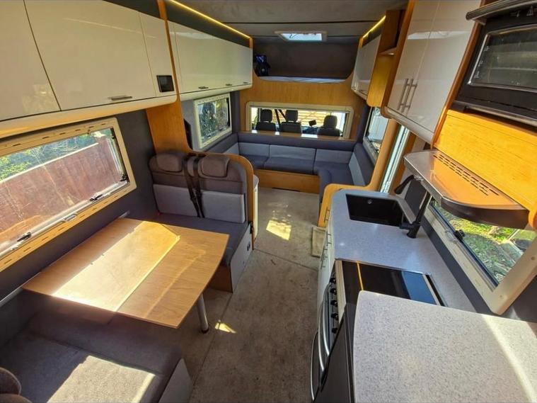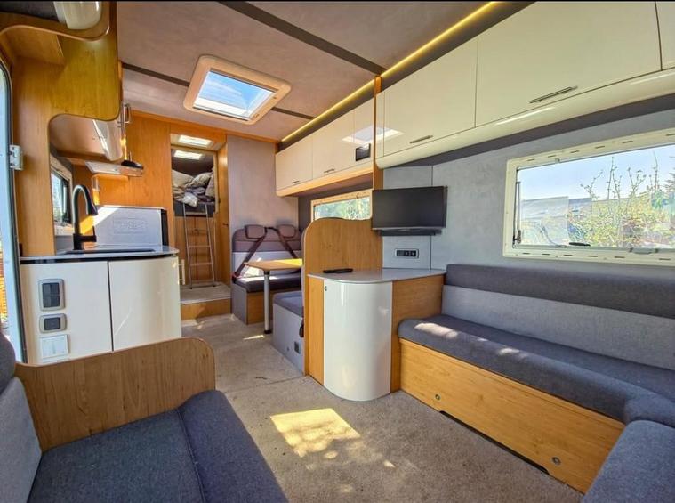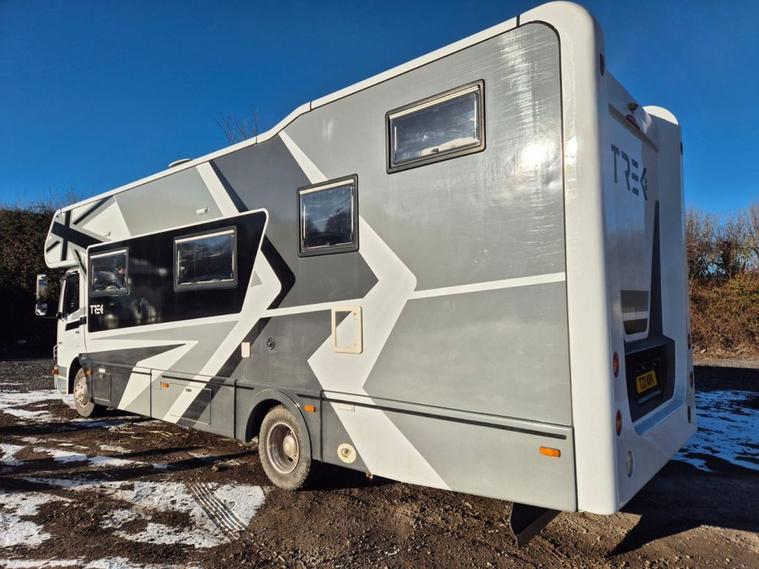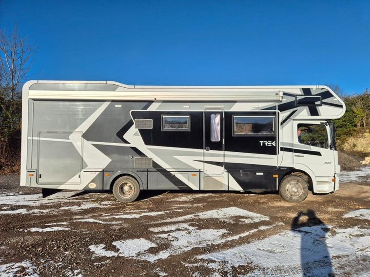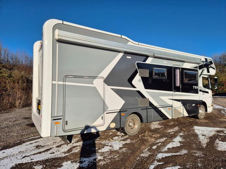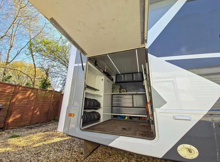 Vehicle Specifications Chassis: Mercedes Atego 822 (Uprated to 8.6T) Mileage: Only 52, 000 miles (87, 000 km) Service History: Full Service History; 2 new engine batteries; just serviced and heating system flushed. Driving Features: Factory rear air suspension (cab remote), Air Con, Electric Windows, Rear-view Camera, and Garmin Truck Sat Nav. Compliance: Sold with a New DVSA MOT on purchase. Living & Luxury (Sleeps 8 / Carries 7) Professionally redesigned interior featuring new suede roof linings, suede wall panels, and laminated finishes. Seating: 7 legal travel seats (3 in cab, 4 belted in rear). Sleeping: 4 double beds accommodating up to 8 people. Lounge/Dining: 8-person lounge and 4-person dinette with all-new upholstery and LED mood lighting. Entertainment: New Avtex Smart TV & Soundbar in lounge, Smart TV in rear bedroom, TV booster, and Roof Aerial. Climate: Alde Central Heating for year-round comfort. High-End Kitchen & Bathroom Kitchen: New Corian worktops, new sink/tap, 12v compressor fridge, air fryer, oven, grill, and microwave. Washroom: Full-size hot shower, toilet, and basin. Utilities: Under-chassis gas tank, water tanks, and dedicated jet wash tanks. Ultimate Off-Grid Power & Tech Electrical: Full Victron Off-Grid System featuring a 3kva Inverter, Lithium battery upgrade, large solar panel, and Color Touch control panel. Connectivity: New mobile internet system (Onboard Wi-Fi) and Vodafone S8 Tracker for security. Power: Gas on-board generator for total independence. Rear Garage & Exterior Garage: Full standing height, fitted with toolbox, engine/tyre rack, and storage cupboards. Designed for karting (fits 2 full-sized karts). Includes LED lighting and mains power. Awning: Full GH Enclosed Awning with new roof, sides, and LED lighting. Exterior: Brand new custom graphics, all-new body and roof sealing, and LED marker lights. Finance Options Available Nationwide Delivery Contact us on 01264506347 today to arrange a viewing of this one-of-a-kind racehome.