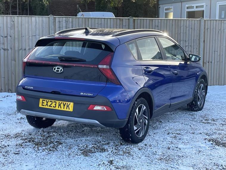 This 2023 Hyundai BAYON T-GDi SE Connect presents an exceptional opportunity with its remarkably low mileage of just 11985 miles, a clear vehicle history check, and an MOT valid until April 2026. This stylish and practical compact SUV is powered by an efficient 1.0L Petrol Hybrid engine, meeting Euro 6 emission standards. The SE Connect trim ensures you stay connected and entertained with seamless Android Auto and Apple CarPlay integration, allowing you to access your favourite apps and navigation directly on the cars display. Experience convenience and confidence on every journey with the integrated rear view parking camera, making manoeuvring in tight spaces effortless. Enjoy hands free calls and music streaming thanks to Bluetooth connectivity with voice recognition, all while keeping comfortable with manual air conditioning. This Hyundai BAYON stands out with its impressive fuel economy, achieving a highlight of 53 mpg, and its low CO2 emissions, indicating it is a more economical and environmentally conscious choice compared to many other vehicles in its class.