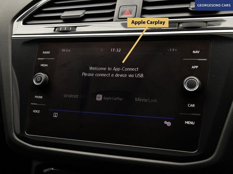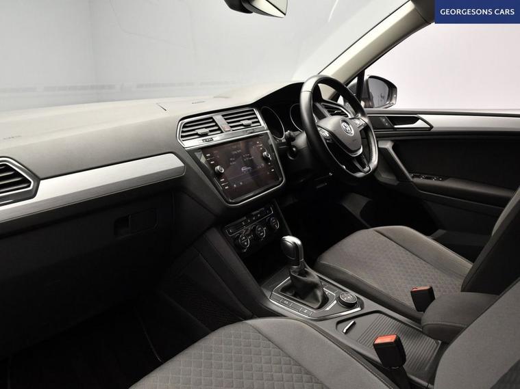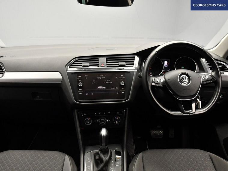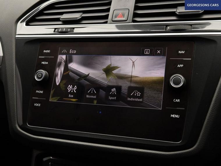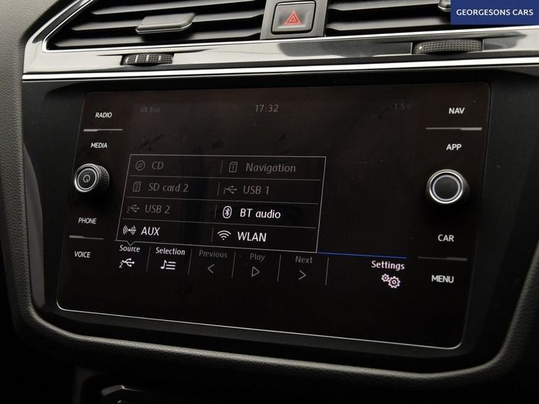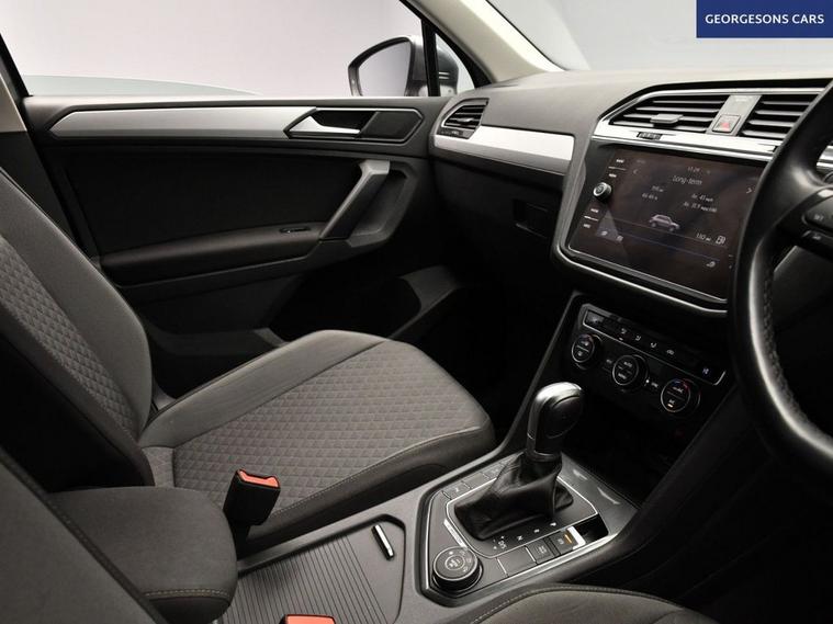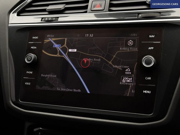 The Volkswagen Tiguan 1.4 TSI SE Navigation combines a responsive 1.4-litre turbo petrol engine with 150hp, delivering 0-62mph in 9.1 seconds and up to 39.8mpg in this all-wheel-drive 4Motion setup with a smooth 6-speed DSG automatic transmission. The SE Navigation trim offers refined practicality with a premium interior. Navigate effortlessly with integrated satellite navigation, Apple CarPlay, Bluetooth and DAB radio. Parking is easy with front & rear parking sensors. Stay comfortable with dual-zone climate control and heated steering wheel. Adaptive cruise control with speed limiter, lane assist and hill assist enhance safety and relaxation on every journey. Selectable drive modes tailor performance, whether for efficiency or dynamic driving. The spacious five-door SUV includes a 615-litre boot for practicality.