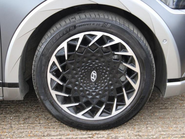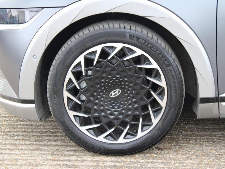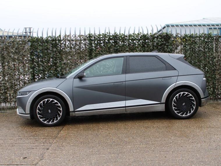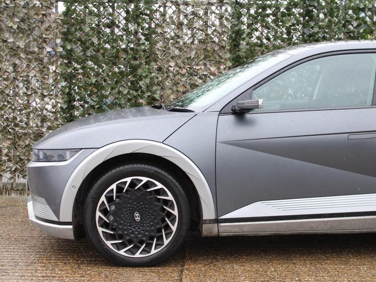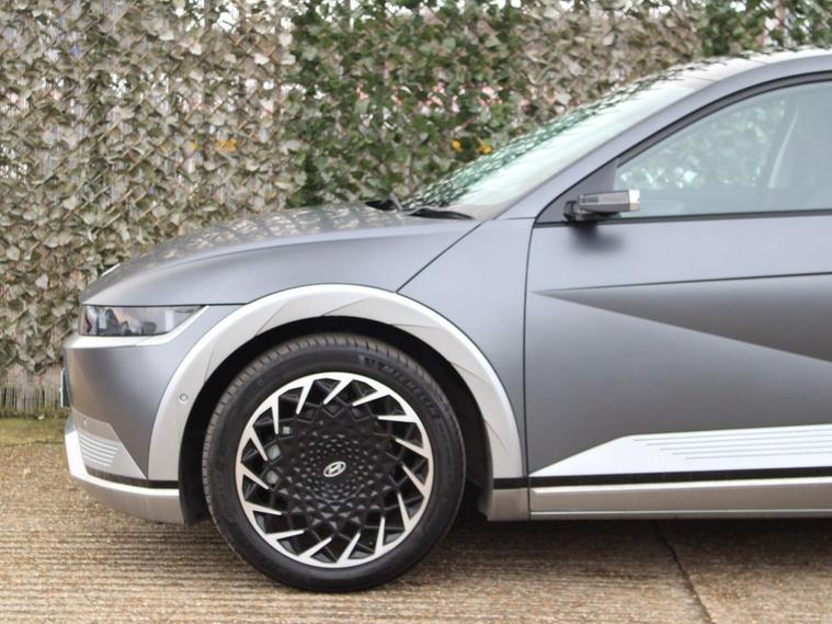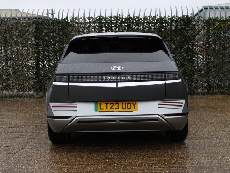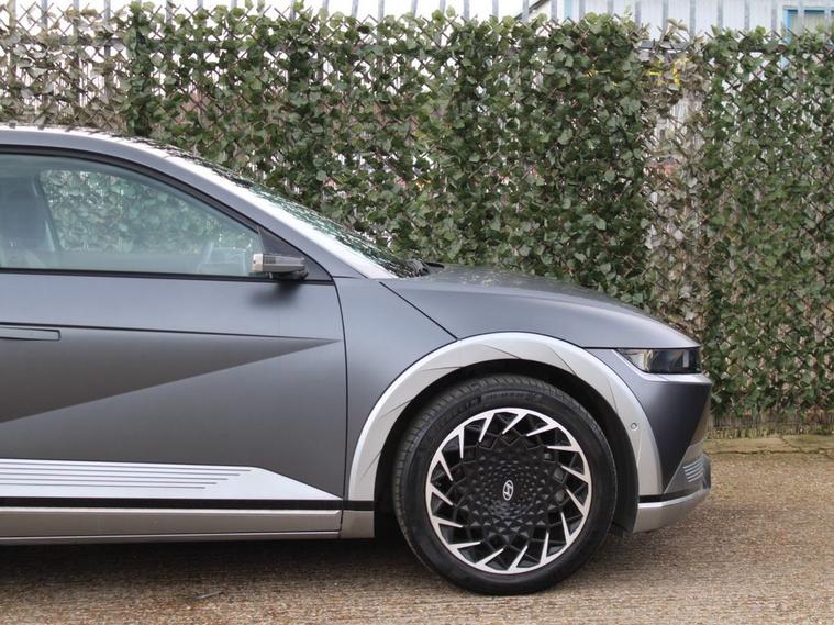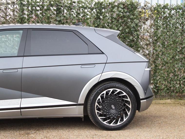 **100% BATTERY HEALTH** This 2023 Hyundai IONIQ 5 Namsan Edition presents an exceptional opportunity with its remarkably low mileage of just 7373 miles. As a fully electric vehicle, it boasts a substantial 77 kWh battery, offering a maximum range of 295 miles when new. This Namsan Edition trim level comes equipped with a comprehensive Parking System featuring a Surround View Monitor and 360 Degree Camera, alongside a premium BOSE sound system with 7 speakers and a subwoofer. Comfort is enhanced by dual zone climate control, while the Dual LED Low and High Projection headlamps ensure excellent visibility. Access is convenient with the Smart Key system, offering keyless entry and a power on-off button. Experience impressive performance with the IONIQ 5s swift 0-60mph acceleration in just 7.3 seconds, a highlight that sets it apart from many other electric vehicles. The generous boot space provides ample room for your luggage and shopping needs. Charging is efficient, with a full charge at home using a 7kW charger taking approximately 10 hours and 53 minutes, and a rapid public charge from empty to 80% achievable in as little as 20 minutes. These features combine to make this Hyundai IONIQ 5 a compelling choice for those seeking advanced electric motoring.