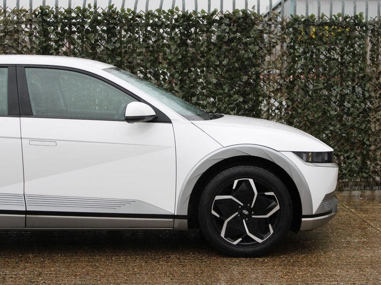 **96.9% BATTERY HEALTH** HYUNDAI MAIN DEALER SERVICE HISTORY ** This 2022 Hyundai IONIQ 5 Premium is a superb example, having had only one owner since new. This electric vehicle boasts a substantial 77 kWh battery, offering a maximum range of 298 miles when new, ensuring you can travel further on a single charge. Convenience is key with Smart Key keyless entry and start stop button, while Dual LED Headlamps provide excellent visibility. Parking is made easier with front and rear sensors for Parking Distance Warning, and you can maintain your ideal cabin temperature with Dual Zone Climate Control. Safety is enhanced by the Blind Spot Collision Avoidance Assist system. Experience impressive performance with the IONIQ 5s acceleration, reaching 0-60mph in just 7.3 seconds, a notable advantage over many comparable vehicles. Charging is efficient, with a full charge at home taking approximately 10 hours and 53 minutes using a 7kW charger, and a rapid charge to 80% possible in as little as 20 minutes at a public charging station. Furthermore, this model offers a generous boot space, making it practical for all your needs.