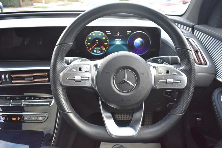 This 2022 Mercedes-Benz EQC 400 AMG Line (Premium Plus) has had only one owner since new and boasts an MOT valid until November 2026, offering excellent peace of mind. As a fully electric vehicle with Four Wheel Drive, it combines advanced technology with impressive performance. The EQC 400 AMG Line (Premium Plus) features a substantial 88 kWh battery, providing a maximum range of 253 miles when new. Charging is convenient, with a full charge at home taking approximately 12 hours and 13 minutes using a 7kW charger, while rapid public charging can achieve 80% capacity in just 45 minutes from empty. Inside, youll find a host of premium features including MULTIBEAM LED Headlights, Wireless Smartphone Charging, Heated Front Seats, and the KEYLESS-GO Comfort Package for effortless entry and starting. A Head-Up Display keeps essential information within your line of sight. The driving experience of this Mercedes-Benz EQC is truly exceptional, highlighted by its rapid 0-60mph acceleration in just 5.1 seconds, demonstrating its powerful electric drivetrain. This swift acceleration sets it apart from many other electric vehicles in its class. Furthermore, the generous boot space ensures practicality for everyday use and longer journeys. The combination of its impressive range, rapid charging capabilities, and the sophisticated AMG Line trim with the Premium Plus package makes this 2022 EQC a compelling choice for those seeking a luxurious and capable electric SUV.
