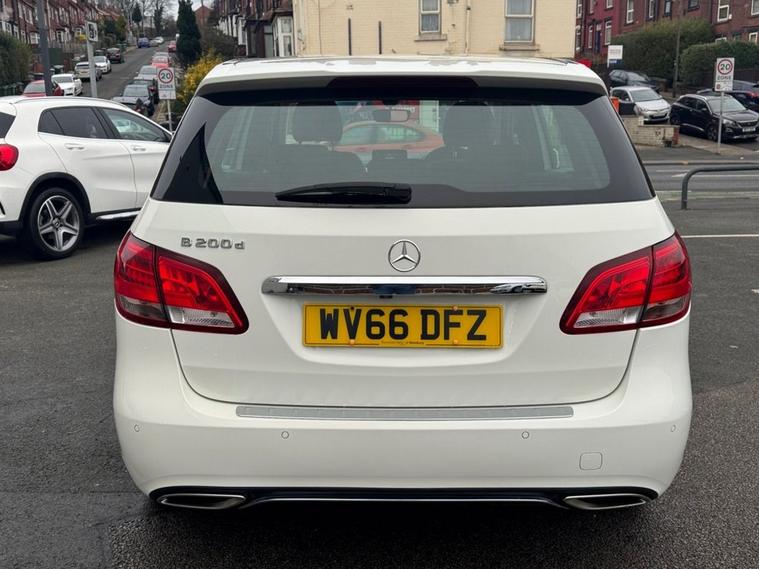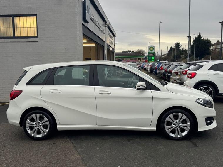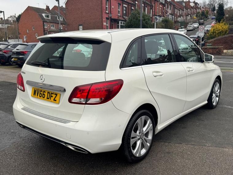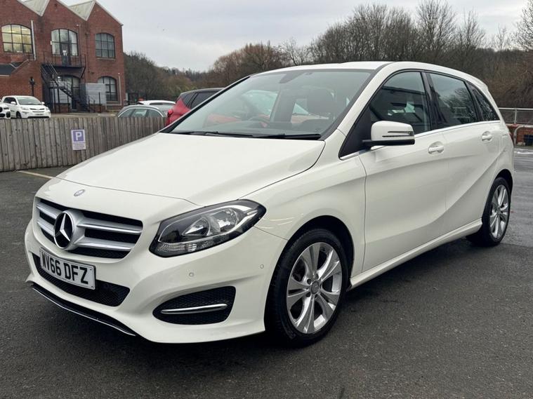 Excellent Condition Mercedes B-Class 2.1 Sport Executive AUTO in White paintwork with 17 Multi-spoke silver alloys. Only 2 owners from new, low miles, full service history (10 services on record to 54, 000 miles). Excellent miles per gallon (68+) and only £20 year tax. Spec includes front/rear parking sensors, reverse parking camera, full leather interior with heated front seats, air con, Bluetooth, multi-function steering with cruise control, auto headlights/wipers, trip computer, remote central locking, sat nav, apple car play, and much more. Call 01138032273 or visit dealer's website