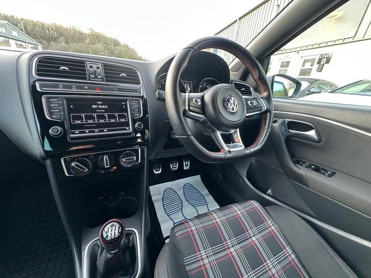 Southwest Motor Company are extremely excited to be offering this fantastic 2015(65) Volkswagen Polo GTI TSI 192 Bluemotion. Finished in the fresh Reflex Silver Metallic with GTI Tartan interior and unmarked 17-inch Diamond-cut alloy wheels, this Polo looks gorgeous from every angle. Beautifully well kept and well presented throughout with a full and well-documented service history, its easy to conclude that this vehicle has been exceptionally well cared for. great specification like DAB radio, Bluetooth, multimedia connectivity, air conditioning, LED lights with Day-Time-Running lights, electric windows, reversing sensors, rear windscreen wiper and multifunction steering wheel which ensures this Polo has a great level of equipment. A well-made and generously sized interior with ISO-Fix child seat anchors and a good-sized boot ensure this Polo offers great practicality as a smaller Hot-Hatch. The 1.8L petrol engine offers outstanding performance whilst retaining great economy, which is delivered through a smooth 6-speed manual transmission. Together with a fantastic chassis and great brakes, this Polo is incredibly fun, agile and confident when you find an empty B-road in front of you. With a brilliant 55 mpg achievable on a run, and this vehicle also being ULEZ COMPLIANT, ensure that running costs are also brilliantly low. An incredibly well cared for example that offers practicality, great performance and sensible running costs. Supplied serviced with a long MOT and 3-month premium warranty (extendable if desired). Part-exchange welcome. All our vehicles are HPI clear. All major debit/credit cards are accepted. Great finance packages are available to suit all customer profiles. The vehicle specification displayed may not be exact for this vehicle. Please contact us to confirm the precise specifications.