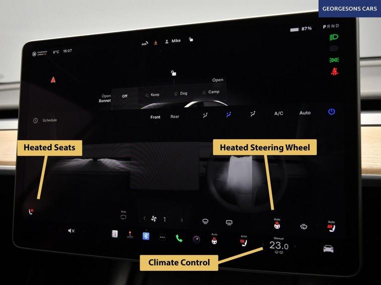 The Tesla Model 3 Dual Motor Performance delivers exceptional all-electric performance with all-wheel drive and the Performance Upgrade, offering rapid acceleration and confident handling through its smooth automatic transmission. With just one owner and three services recorded, this Model 3 has been well maintained and is presented in excellent condition. It features an electric tailgate and panoramic glass roof, enhancing both practicality and cabin space. Connectivity includes Bluetooth, DAB radio and integrated satellite navigation, while a 360 camera system and parking sensors make manoeuvring effortless. Dual-zone climate control, heated seats and a heated steering wheel ensure comfort in all conditions, complemented by electric memory seats. Advanced driver assistance systems include adaptive cruise control with speed limiter, lane assist and blind spot assist, providing a relaxed and secure driving experience. This Model 3 Performance combines cutting-edge technology, strong electric performance and premium comfort in a sleek and highly desirable saloon.