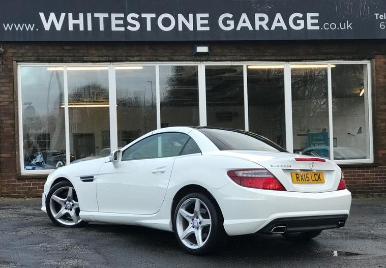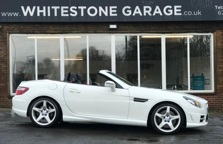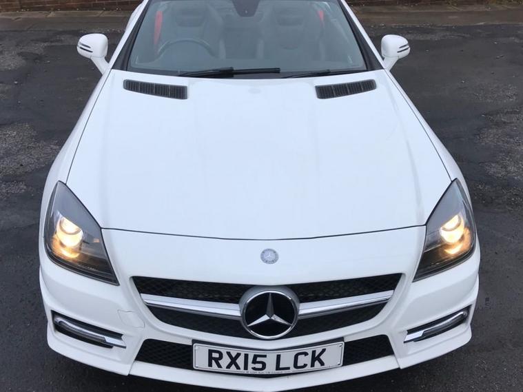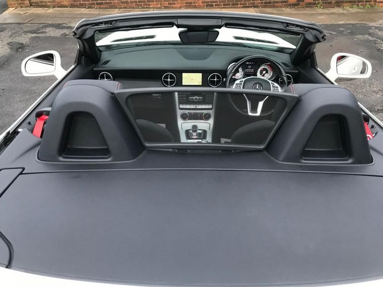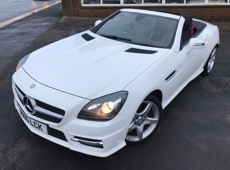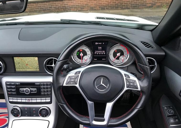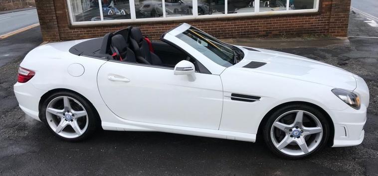 A rare 9 speed auto SLK with a top spec and only thirty five pounds a year tax, owned by a local lady for the past 8 years and serviced annually it has red seat belts, air scarfs, heated leather seats, wind deflector, cruise control, sat nav, bluetooth, air cond, AMG overmats, supplied with 2 keys and all of its original bookpacks a great drive and super economical.