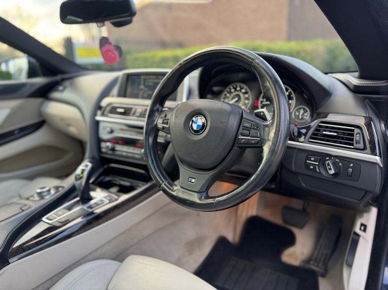 HERE WE HAVE A LOVELY BMW 640D BACKED WITH ITS SERVICE HISTORY INCLUDING A RECENT SERVICE AND 12 MONTHS MOT, VERY WELL MAINTAINED, DRIVES EXCELLENT, LOVE;Y SPEC++PAN ROOF++FULL LEATHER++HEATED SEATS++REVERSE CAMERA++NAV++ELECTRIC MEMEORY SEATS++FOLDING MIRRORS++HEADLIGHT ASSIST++AUTO LIGHTS++BLUETOOTH++12 MONTHS AA BREAKDOWN COVER INCLUDED, WARRANTY INCLUDED, FINANCE AVAILABLE APPLY WITHIN, HPI CLEAR, 2KEYS