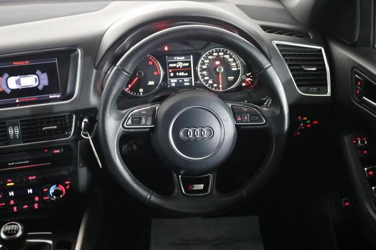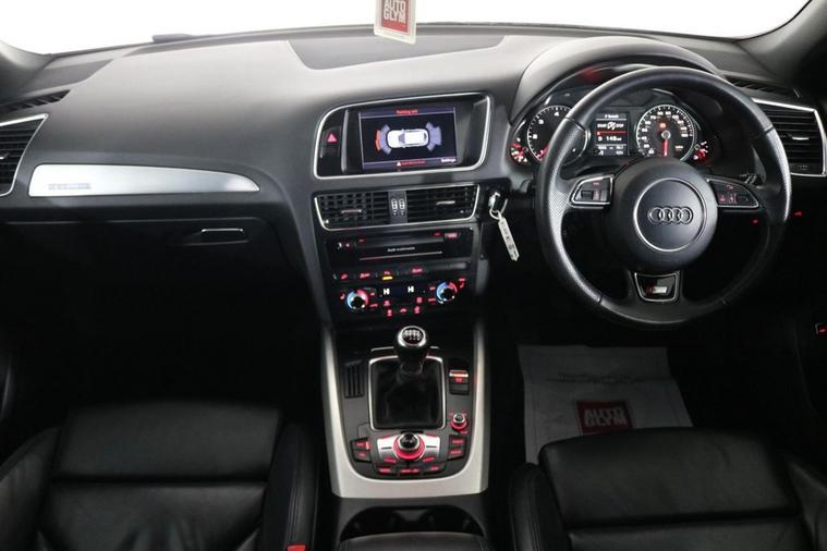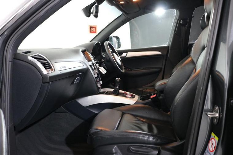 This desirable Audi Q5 S Line Plus Quattro finished in Daytona Grey looks fantastic complemented by 20 inch Alloy Wheels, Rear Privacy Glass, LED Lights and S Line Body Styling. Find your way with integrated SATELLITE NAVIGATION with 7 inch LCD Display. Sit in luxury with FULL LEATHER Upholstery with HEATED FRONT SEATS. Park in ease with FRONT & REAR PARKING SENSORS with Visual Display. Keep connected with BLUETOOTH Phone System. Listen to your music through DAB Digital Radio and Audi Music Interface. Comfortable to drive with Tri-Zone CLIMATE CONTROLLED AIR CONDITIONING and CRUISE CONTROL. Well equipped with Power-Folding Door Mirrors, Auto Bi-Xenon Headlights, Rain-Activated Wipers and Power-Operated Tailgate. Also fitted with Multifunctional Steering Wheel, ISOFIX seats, Alarm and Remote Door Locking with 2 x keys. Buy in confidence with JUST 2 OWNERS from new and SERVICE HISTORY with 8 x Documented Services.