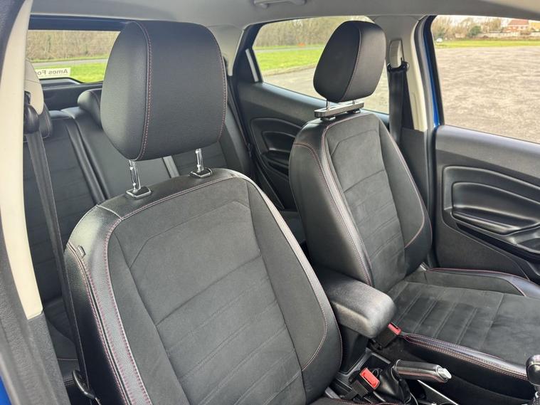 This 2019 Ford EcoSport T ST-Line offers a compelling blend of style and practicality, making it a standout choice. Powered by a responsive 1.0L petrol engine and meeting Euro 6 emissions standards, this ST-Line trim vehicle is equipped with a Rear View Camera Pack for enhanced parking assistance, including rear sensors and a camera. Drivers will appreciate the convenience of automatic headlights and the advanced Ford SYNC 3 Navigation system, complete with an 8-inch touchscreen that seamlessly integrates with Android Auto and Apple CarPlay. For comfort, the electronic automatic temperature control ensures a pleasant cabin environment. The Ford EcoSport T ST-Line demonstrates its efficiency with a highlighted fuel economy of 46 mpg, a figure that positions it favourably against other vehicles in its class. Furthermore, its low CO2 emissions indicate a more environmentally conscious performance. These highlights, combined with its comprehensive feature set and sporty ST-Line styling, make this EcoSport a well rounded and attractive option for those seeking a capable and feature rich compact SUV.