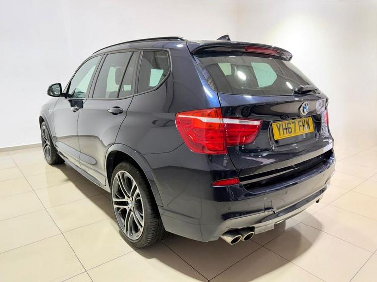 ** NATIONWIDE DELIVERY ** X2 KEYS ** UPGRADED 20 ALLOYS ** HARMAN KARDON ** OPENING PANORAMIC SUNROOF ** APPLE CARPLAY ** BMW PROFESSIONAL MEDIA SYSTEM ** REVERSE CAMERA ** POWERED TAILGATE ** MEMORY SEATS ** HEATED SEATS ** ULEZ COMPLIANT ** SERVICE HISTORY ** 1 YEAR MOT (ADVISORY FREE) ** FRESH SERVICE ** 6 MONTHS WARRANTY ** 12 MONTHS AA BREAKDOWN COVER ** ULEZ COMPLIANT ** Introducing our Carbon Black BMW X3 M Sport (2017), a premium SUV that perfectly balances performance, practicality and refined BMW styling. Powered by the strong 3.0-litre 30d diesel engine producing 258 ps and paired with a smooth Sport Automatic transmission and intelligent xDrive all-wheel drive, this Euro 6 (s/s) model delivers effortless performance and confident handling in all conditions. Finished with striking 20-inch M Double-Spoke Style 310M alloy wheels, M Aerodynamic bodystyling, high-gloss Shadowline exterior trim and Xenon headlights, it has a commanding and sporty road presence. Inside, the cabin offers a high-quality, driver-focused environment enhanced by the M Sport and M Sport Plus packages. Features include front electric sport seats with driver memory and heating, anthracite headlining, brushed aluminium trim, ambient lighting and dual-zone automatic climate control. Technology highlights include BMW Professional Navigation, Apple CarPlay preparation, BMW ConnectedDrive services, DAB digital radio, enhanced Bluetooth with voice control and the superb Harman Kardon sound system, ensuring every journey is both comfortable and connected. Practicality and safety are equally impressive, with front and rear Park Distance Control, reversing camera, automatic tailgate, panoramic glass sunroof and split-folding rear seats providing everyday versatility. Drive Performance Control offers ECO PRO, Comfort, Sport and Sport Plus modes, while advanced safety systems such as Dynamic Stability Control, tyre pressure monitoring and a Thatcham Category 1 alarm provide added peace of mind. This BMW X3 30d M Sport is an outstanding example, offering luxury, performance and usability in a sleek Carbon Black finish.