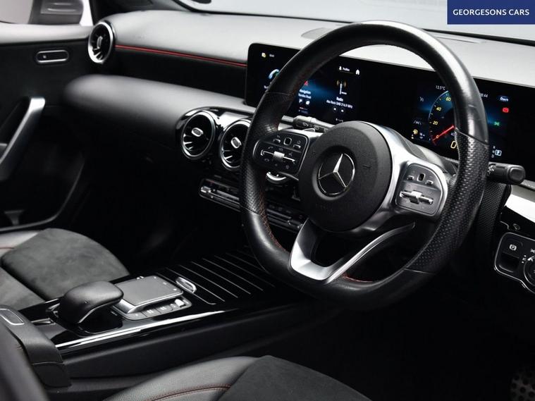 The Mercedes-Benz A200 AMG Line (Executive) combines a responsive 1.3-litre turbo petrol engine with 163hp, delivering 0-62mph in 8.2 seconds and up to 47.1mpg in this front-wheel-drive setup with a smooth 7-speed DCT automatic transmission. The AMG Line (Executive) trim elevates the sporty appeal with , premium features, and a dynamic chassis for refined performance. With one owner and three services, this A-Class is in excellent condition. Navigate effortlessly with integrated satellite navigation, Apple CarPlay, Bluetooth, and DAB radio, ensuring seamless connectivity on every journey. Parking is a breeze thanks to the reverse camera and parking sensors, providing clear visibility and confidence in tight spaces. Stay comfortable with dual-zone climate control and heated seats, offering personalised warmth year-round. Cruise control with speed limiter and paddle shift gears enhance relaxation and control on highways. Selectable drive modes provide tailored performance, whether for efficiency or dynamic driving. The spacious five-door hatchback design includes a 370-litre boot for practicality