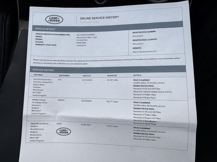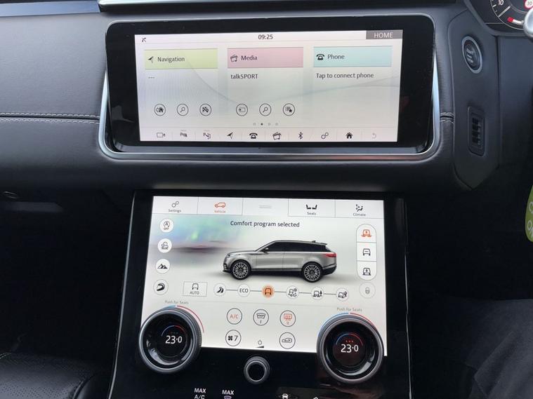 This 2019 Land Rover Range Rover Velar P300 HSE is presented with a clear vehicle history check, offering you peace of mind. This sophisticated SUV features a powerful 2.0 litre petrol engine paired with a Four Wheel Drive system, ensuring capable performance in various conditions. As a Euro 6 compliant vehicle, it meets stringent emission standards. The HSE trim level signifies a high specification, and this particular model boasts notable features such as a Head Up Display to keep key information in your line of sight, and Adaptive Cruise Control for a more relaxed driving experience. The inclusion of Electronic Air Suspension contributes to a smooth and comfortable ride, while the 350mm front brakes provide confident stopping power. Experience exhilarating performance with this Range Rover Velar, capable of accelerating from 0 to 60 miles per hour in just 5.9 seconds, a testament to its P300 designation. This impressive acceleration highlights its dynamic capabilities compared to other vehicles in its class. Furthermore, its substantial towing weight of 2400 kg makes it a practical choice for those needing to tow trailers or caravans. The P300 badge signifies the potent engine under the bonnet, delivering a blend of performance and refinement that defines the Range Rover Velar experience.