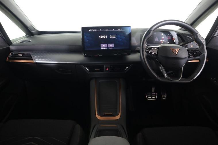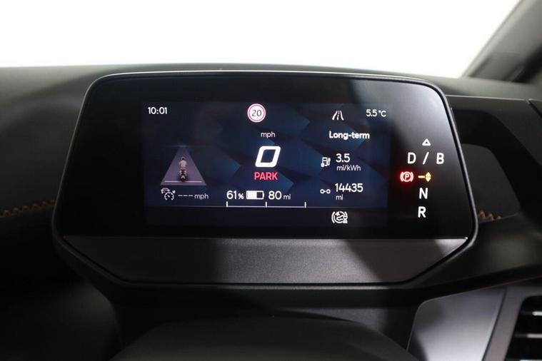 This 2023 CUPRA Born V2 presents an exceptional ownership proposition with only one previous owner and a remarkably low mileage of just 14, 435 miles. As an electric vehicle, it boasts a 62 kWh battery offering a maximum range of 264 miles when new. Charging is convenient, with a full charge at home taking approximately 9 hours and 30 minutes using a 7kW charger, and a rapid charge to 80% achievable in just 37 minutes at a public charging station. This Born is equipped with advanced features including an Augmented Reality Head Up Display, Keyless Go central locking for effortless entry and start, and Park Assist with front and rear sensors to aid manoeuvring. You'll also appreciate the integrated Bluetooth for seamless connectivity and Climatronic dual-zone air conditioning for personalised comfort. The CUPRA Born V2 stands out with its impressive performance, accelerating from 0 to 62mph in a swift 7.3 seconds, demonstrating its dynamic capabilities. This acceleration figure is notably quicker than many other electric vehicles in its class, offering a more engaging driving experience. Furthermore, the generous boot space provides ample room for luggage or shopping, making it a practical choice for everyday use and longer journeys. With its combination of low mileage, single ownership, impressive range, and advanced technology, this electric CUPRA Born offers a compelling and refined driving experience.