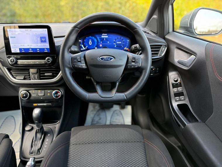 Here for sale at Leigh Cars Ltd we are delighted to present this superb high specification ULEZ EXEMPT example of a Ford Puma 1.0T MHEV ST-Line SUV automatic 5 door petrol hybrid 125bhp 6 speed manual hatchback finished in solar silver metallic paint. This superb example comes with a full Ford service history (due every 2 years or 18k miles). As part of our thorough pre sale preparations this wonderful example has had a full safety inspection done including new front tyres and a fresh engine service - giving it 2 services in total now. This Puma offers a competitive list of equipment including rear parking sensors, half black leather interior, SYNC 3 satellite navigation with Apple car play / Android auto, cruise control, colour touch screen infotainment system, bluetooth connectivity, DAB radio, voice command, air conditioning, automatic lights and wipers, electric adjustable door mirrors, power folding door mirrors, heated windscreen, remote central locking, 17in Alloy Wheels + much more. Driven by Fords award-winning 1.0 MHEV petrol hybrid engine producing 125bhp, and an automatic gearbox, this Puma gives a drive guaranteed not to disappoint. Economy is not compromised at all, being a Euro 6 engine it is also ULEZ charge exempt. Save £££ from new and opt for this stunning low mileage 1 owner from new example with some fantastic finance offers available. As we are an AA accredited dealer, with any purchase through Leigh Cars Ltd, you will also receive 12 months free breakdown assistance. We also offer AA warranty packages for up to 2 years subject to terms and conditions. We offer very competitive low rate finance packages including some fantastic PCP options on this one - Why not check out our finance calculator on our website where you can tailor a personal quote to yourself and instantly apply for finance online where we will have an answer for you within 15 minutes. We offer part exchange on all of our vehicles and nationwide delivery and we also offer home or work appointment services subject to conditions. We are rated 5 stars by our customer reviews, check us out on Autotrader, Trustpilot, Google, Car Gurus or Facebook (@leighcarsltd) to see what our customers have to say about the quality service we provide. We are very proud to be a Car Gurus top rated dealer 2018, 2019, 2020, 2021, 2022 and 2023. Quality Cars You Can Trust.