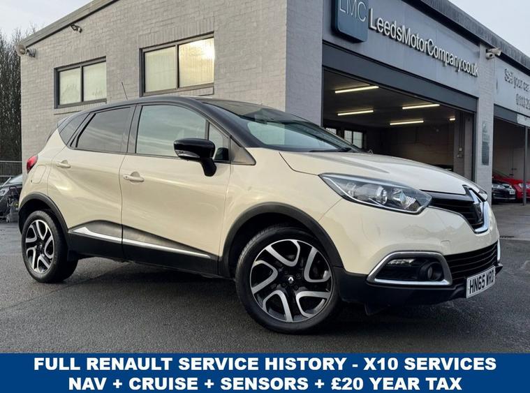Excellent well maintained example with only 50, 000 miles from new. Full RENAULT service history - 10 Services on record (see pic). Finished in stunning Ivory paint with a black contrasting roof and teamed with 17 diamond cut Explore alloy wheels. Extremely economical to run with £20 annual road tax and an average fuel economy of 70.6 MPG. Outstanding specification which includes built in touchscreen satellite navigation, Bluetooth connectivity, USB & AUX input, rear parking sensors, multi-function steering wheel, cruise control & speed limiter, automatic headlights & rain sensing wipers, climate control air conditioning, ISOFIX and much much more. PLEASE CHECK OUR WEBSITE, WE HAVE 7 MORE CAPTURS AVAILABLE. www. dealer's website or call 01138032273.