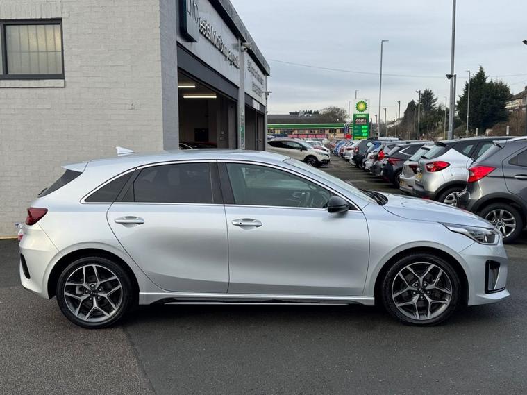 This 2021 Kia Ceed T GDi GT Line boasts a full service history, offering excellent peace of mind for its next owner, with its MOT valid until June 2026. This Euro 6 compliant model features a responsive 1.5 litre petrol engine and comes in the desirable GT Line trim. Inside, youll find a host of convenient features designed to enhance your driving experience, including Apple CarPlay and Android Auto with voice control, allowing seamless integration of your smartphone. The reversing camera system with dynamic guidelines makes parking easier, while heated front seats ensure comfort on colder journeys. Bluetooth connectivity with voice recognition and music streaming further adds to the cars modern appeal. The Kia Ceed T GDi GT Line offers an engaging drive, accelerating from 0 to 60 miles per hour in just 8.6 seconds. This performance, combined with its comprehensive service history and long MOT, positions it favourably against other vehicles in its class. The inclusion of advanced connectivity options like Apple CarPlay and Android Auto, alongside practical features such as the reversing camera and heated seats, demonstrates a commitment to driver convenience and technology that sets this Ceed apart.