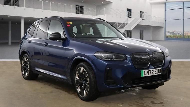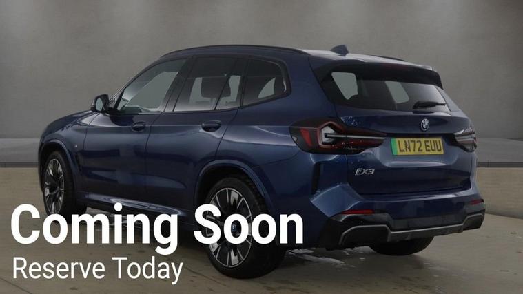 Why This BMW iX3 M Sport Pro Wins? This 2022 BMW iX3 M Sport Pro is a rare combination of electric performance, luxury and practicality, made even more appealing by having just one owner and exceptionally low mileage for its age. Powered by a large 80kWh battery, it offers up to 282 miles of range when new, making it ideal for both daily commuting and longer motorway journeys. With its sharp M Sport Pro styling and SUV presence, it delivers the premium feel expected from BMWs flagship electric range. Inside, the cabin is packed with high-end technology and comfort features including BMW Live Cockpit Professional, Bluetooth connectivity, Harman Kardon premium sound system, heated front seats, and Comfort Access keyless entry. Adaptive LED headlights provide excellent visibility in all conditions, while the spacious boot and clever interior layout make it just as practical as it is luxurious. Your Peace of Mind? - Clear vehicle history check - Optional 336-month extendable warranties - Free 12-month AA roadside assistance - Fully prepared to showroom standard with its existing MOT and servicing, and we can organise any further MOT or service enhancements at your request. - Drive Away, Insurance Available - No hidden or extra costs, like admin fees Autotraders 2024 Insights: Top 3 BMW iX3 Buyer Priorities: - Electric range - Premium interior quality - Performance & driving comfort - The iX3 delivers on all three with its 282-mile range, 062mph in just 6.8 seconds, and its high-spec luxury interior, making it one of the most desirable electric SUVs on the market. Stress-Free Next Steps: - Free Part Exchange Valuation - £0 Deposit Car Finance Includes free credit checker - Reserve for £99 Fully refundable