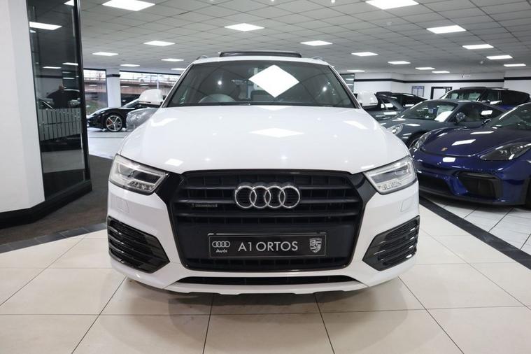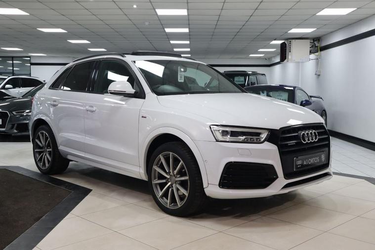 JUST ARRIVED INTO STOCK AS A GENUINE PART EXCHANGE! COVERING 107K MILES FROM NEW BACKED WITH STUNNING AUDI MAIN DEALER SERVICE HISTORY! VERY SOUGHT AFTER Q3 S LINE PLUS! FINISHED IN GLACIER WHITE METALLIC! SPEC INCLUDES, PANORAMIC GLASS ROOF, PARK ASSIST INCLUDING REVERSING CAMERA, HIGH GLOSS BLACK EXTERIOR STYLING PACKAGE, UPGRADED 19 INCH ALLOY WHEELS, LED INTERIOR LIGHT PACKAGE, LUGGAGE COMPARTMENT PACK, PERFORATED ALCANTARA/LEATHER BLACK SPORTS SEATS, CRUISE CONTROL, NAVIGATION PACKAGE, VOICE RECOGNITION, AUDI MUSIC INTERFACE, AUDI DRIVE SELECT! PANORAMIC ROOF, PAN ROOF, GLASS ROOF, EXCEPTIONAL VALUE FOR MONEY, EARLY VIEWING IS ESSENTIAL TO AVOID DISAPPOINTMENT, COMPREHENSIVE WARRANTY OPTIONS AVAILABLE, AA BREAKDOWN COVER AVAILABLE, MUST BE SEEN NOT TO BE MISSED, BE VERY QUICK THIS GEM WILL SOON GO!, VIEW MORE PICS ON OUR WEBSITE, PLEASE CALL FOR FULL SPEC, SIMPLY STUNNING!