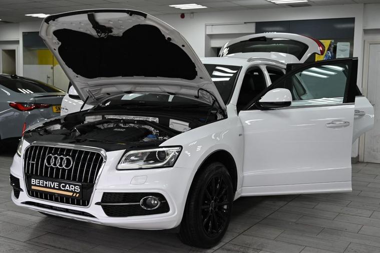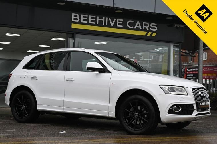 DRIVE AWAY TODAY OR HOME DELIVERY TO YOUR DOORSTEP FINANCE & PART EXCHANGE ARRANGED ONLINE** 7 DAY MONEY BACK GUARANTEE** Lovely spec Audi Q5 tdi quattro s-line in metallic white with service history audi concert sound system cd dab radio bluetooth media aux s-line leather seats with armrest heated electric heated door mirrors xenon lights s-line steering wheel with f1 style paddleshifts alloys privacy