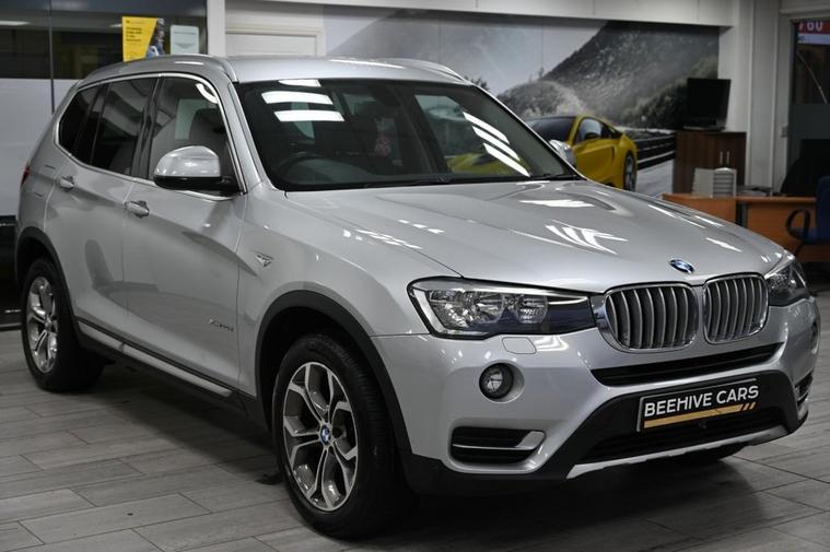 DRIVE AWAY TODAY OR HOME DELIVERY TO YOUR DOORSTEP FINANCE & PART EXCHANGE ARRANGED ONLINE** 7 DAY MONEY BACK GUARANTEE** Nice 4X4 Bmw X3 2.0 20d x-line x-drive suv in metallic glacier silver with full service history sat nav cd dab radio bluetooth media usb aux reverse camera full leathers with armrest heated seats electric heated folding door mirrors front and rear parking aid sensors sport comfort eco driving modes push button stop start electric push button tailgate alloys privacy