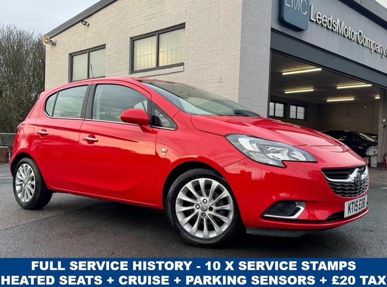Vauxhall Corsa 1.4 EcoFlex SE in Flame Red paint with 16 Silver alloys. Outstanding low mileage, high specification example with only 27, 777 miles from new and full service history - 10 service stamps on record with fully stamped service book. Only £20 year road tax, low insurance group (6) and over 55 miles per gallon combined fuel efficiency. Excellent specification with half leather interior, auto headlights, city steering, front/rear parking sensors, multi-function steering including cruise control, USB & AUX input, heated seats and heated steering wheel, remote central locking with 2 keys, ISOFIX, and much much more. We have 5 more Vauxhall Corsa available - please visit our website dealer's website or call 01138032273.