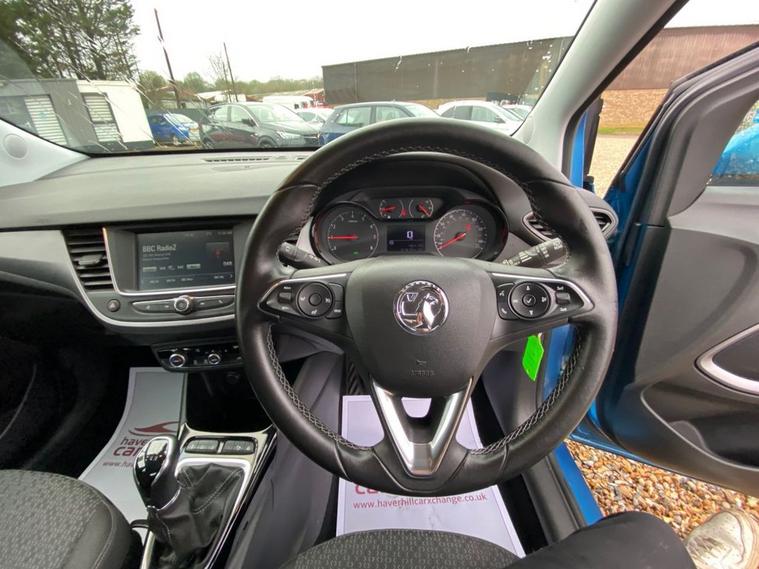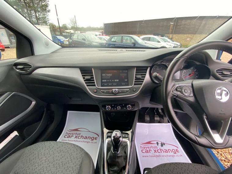 ONLY 16, 751 MILES+LONG MOT UNTIL 01.09.2026+R4.0 INTELLILINK TOUCH-SCREEN INFOTAINMENT SYSTEM+CLIMATE CONTROL AIR-CONDITIONING+AUTOMATIC HEADLIGHT ACTIVATION+RAIN-SENSING WINDSCREEN WIPERS+PARKING ASSISTANCE+METLLIC PERSIAN BLUE PAINT+16 INCH ALLOY WHEELS. At Haverhill Car Xchange we would like to offer you our EXTREMELY LOW MILEAGE Vauxhall Crossland X SE SUV which has been finished in a metallic Persian Blue paint with Black Florey Cloth upholstery. Specification Includes a R4.0 Intellilink Touchscreen Infotainment System, 12 Volt Power Socket, Electronic Climate Control Air-Conditioning, Cruise Control with Speed Limiter and Intelligent Speed Adaptation, Electrically Operated Front and Rear Windows with Safety Autoreverse and One-Touch Facility, Body Coloured Bumpers/Door Handles and Door Mirrors, Automatic Headlight Activation, Halogen Headlights, LED Daytime Running Lights, Front Fog Lights, High Level LED Centre Rear Break Light, Rain-Sensing Windscreen Wipers, Automatically Dimming-Anti-Dazzle Rear-View Mirror, Door-to-Door Illumination, Parking Assistance, Multifunction Steering Wheel, 16 Inch Alloy Wheels, ABS Breaking System, Airbags, Alarm, Immobiliser, Remote Central Locking and ISOFIX Anchorage Points for Child Seats.
