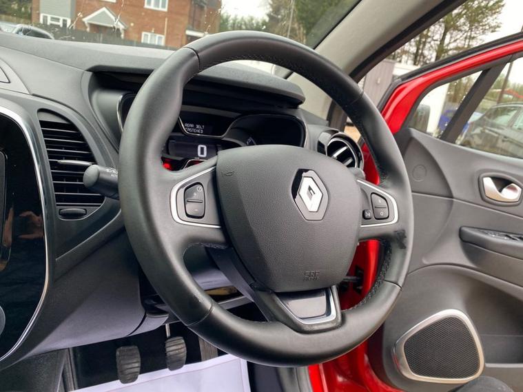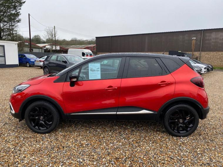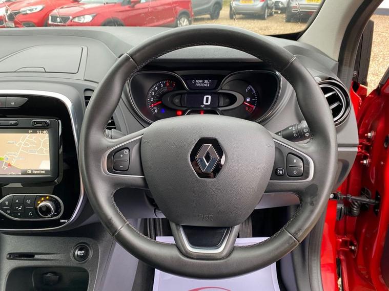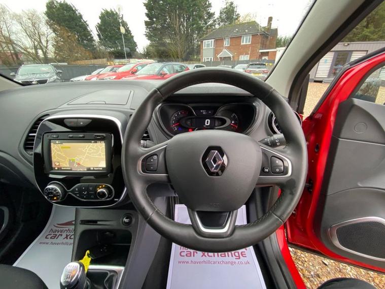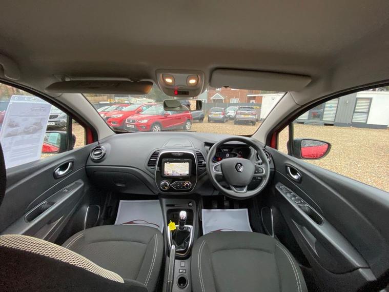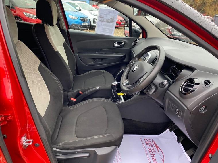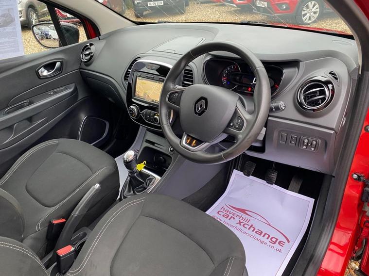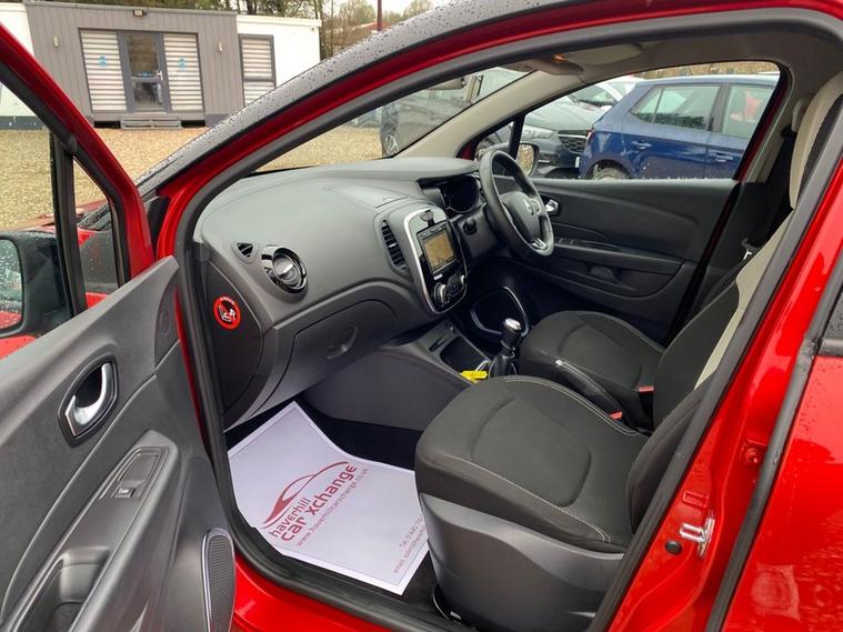 ONLY 48, 165 MILES+LONG MOT+MEDIANAV MULTIMEDIA SYSTEM+AUTOMATIC CLIMATE CONTROL AIR-CONDITIONING+AUTOMATIC HEADLIGHT ACTIVATION+RAIN-SENSING WINDSCREEN WIPERS+PARKING ASSISTANCE WITH PARKING CAMERA+FLAME RED PAINT WITH METALLIC DIAMOND BLACK ROOF+17 INCH ALLOY WHEELS. At Haverhill Car Xchange we would like to offer you our EXTREMELY LOW MILEAGE Renault Captur Energy Iconic SUV which has been finished in a Flame Red paint with metallic Diamond Black Roof, Door Mirrors and Charcoal Grey-Light Grey cloth upholstery. Excellent Specification Includes a MediaNav Multimedia System, USB and Jack, 12 Volt Power Socket, Automatic Climate Control Air-Conditioning, Cruise Control with Speed Limiter, ECO Mode, Front and Rear Electric Windows, Body Coloured Bumpers/Door Handles, Black Roof/Rear Roof Spoiler and Door Mirrors with Integrated Side Indicators, Automatic Headlight Activation, Front and Rear LED Daytime Running Lights, LED Front Fog Lights, Rain-Sensing Windscreen Wipers, Parking Assistance with Parking Camera, Multifunction Steering Wheel, Tinted Windows, Hill Start Assist, Safety Locks on Rear Doors, ABS Breaking System, Airbags, Alarm, Immobiliser, Remote Central Locking and ISOFIX Anchorage Points for Child Seats.