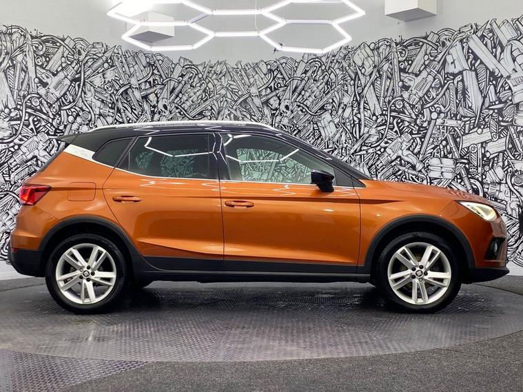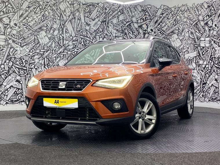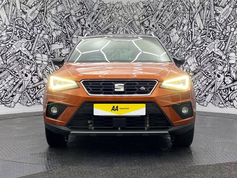 This 2019 SEAT Arona TSI FR boasts an exceptionally low mileage of just 39, 603 miles, making it a standout choice for its age. This Euro 6 compliant 1.0 litre petrol model comes in the sporty FR trim, offering a clear vehicle history check and an MOT valid until September 2026 for your peace of mind. Inside, youll find a host of modern features designed for convenience and connectivity, including Full LED Headlights, Bluetooth Audio Streaming with Handsfree System, and the Connectivity Pack Plus with Wireless Phone Charging. The Full Link Smartphone Integration, compatible with Android Auto and Apple CarPlay, ensures seamless access to your digital life on the go, while Dual Zone Climate Control allows for personalised comfort for all occupants. The SEAT Arona TSI FR excels with its impressive fuel economy, achieving a notable 49 miles per gallon, which indicates it is more efficient than many other vehicles in its class. Furthermore, its low CO2 emissions contribute to a more environmentally conscious drive. These highlights, combined with its comprehensive feature set and excellent provenance, present a compelling package for anyone seeking a stylish and practical compact SUV.
