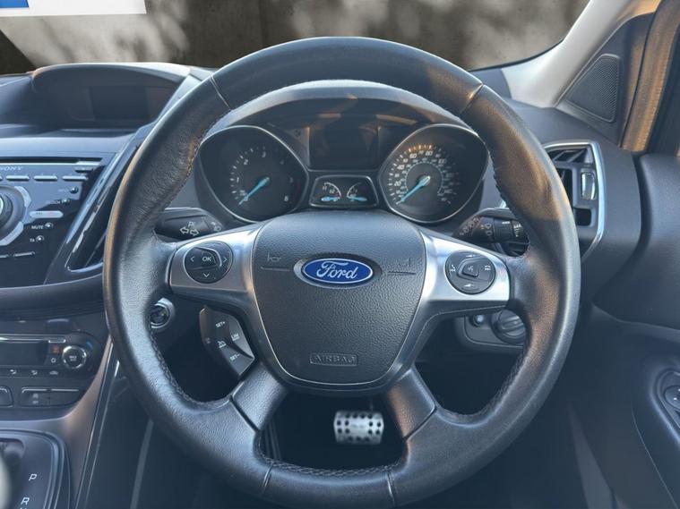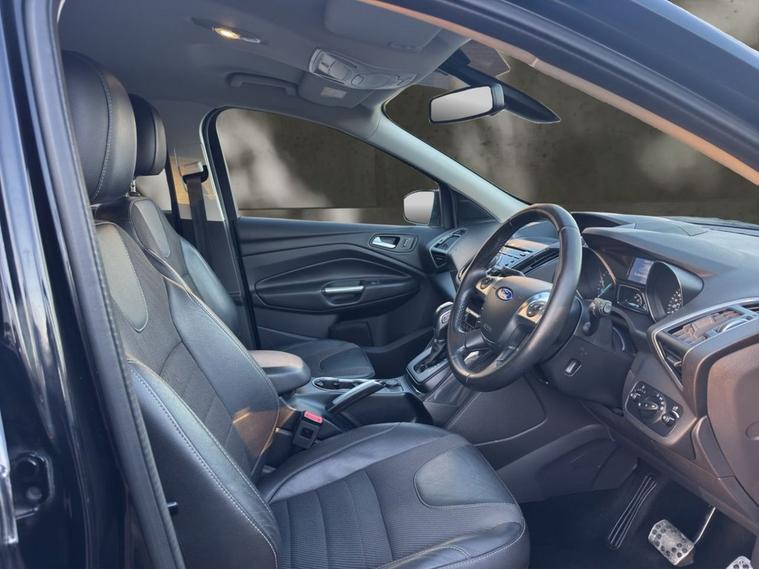 2 KEYS, NON-SMOKERS CAR, 8 STAMPS IN THE BOOK, WE SOLD THIS CAR IN 2023 AND HAVE LOOKED AFTER IT EVER SINCE. THIS IS A WELL LOOKED AFTER VEHICLE. This 2015 Ford Kuga TDCi Titanium boasts a clear vehicle history, offering you peace of mind. This Four Wheel Drive model is equipped with a 2.0L Diesel engine and meets the Euro 6 emission class. Inside, youll find Dual Zone Electronic Automatic Temperature Control for personalised comfort, and Bluetooth handsfree phone connectivity for seamless communication on the go. The Titanium trim also includes automatic headlights, which conveniently switch on when needed. With an impressive fuel economy of 52 mpg, this Kuga TDCi Titanium demonstrates excellent efficiency for its class, indicating it is a more economical choice compared to similar vehicles. This combination of practical features, robust Four Wheel Drive capability, and strong fuel economy makes this Ford Kuga a well rounded and appealing option.